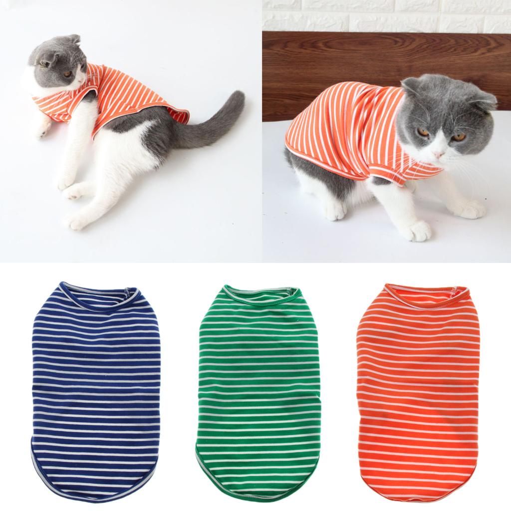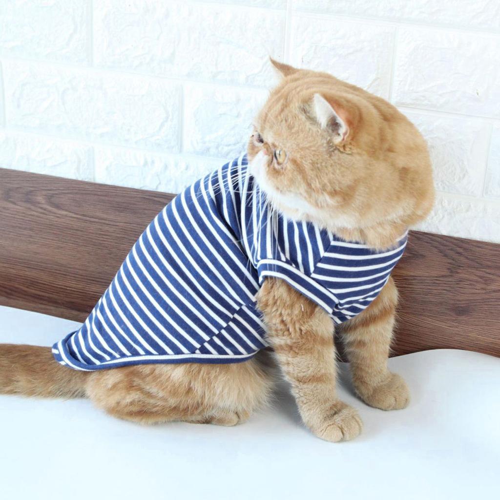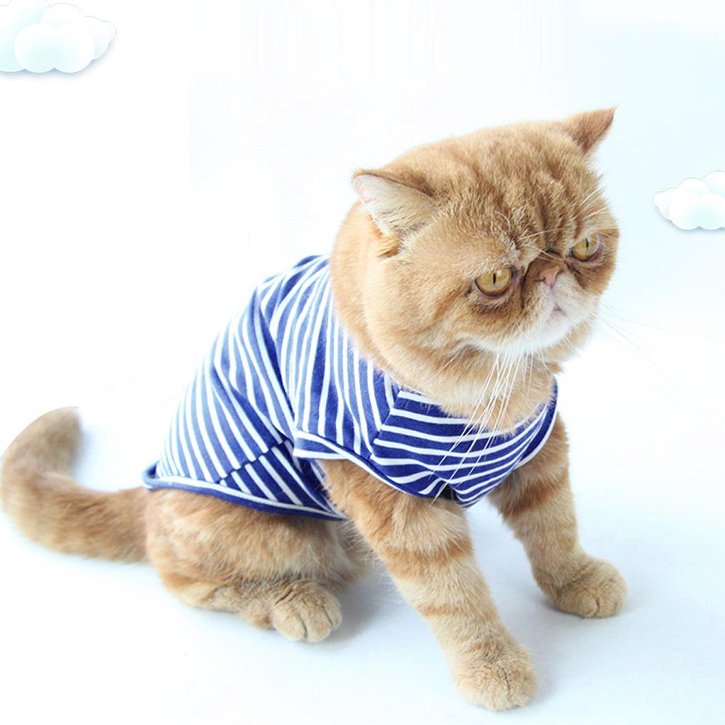 Pet Cat Striped Pajamas Kitten Comfortable Cotton Clothes Shirt Blue