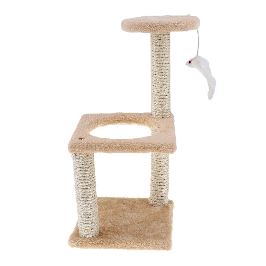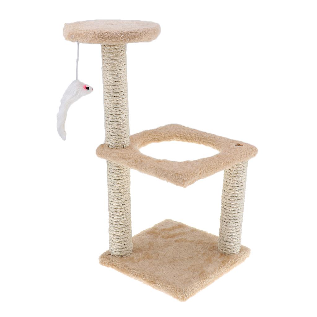 Pet Cat Tree Toy Three-layer Round Hole Kitty Climbing Frame Cream-coloured