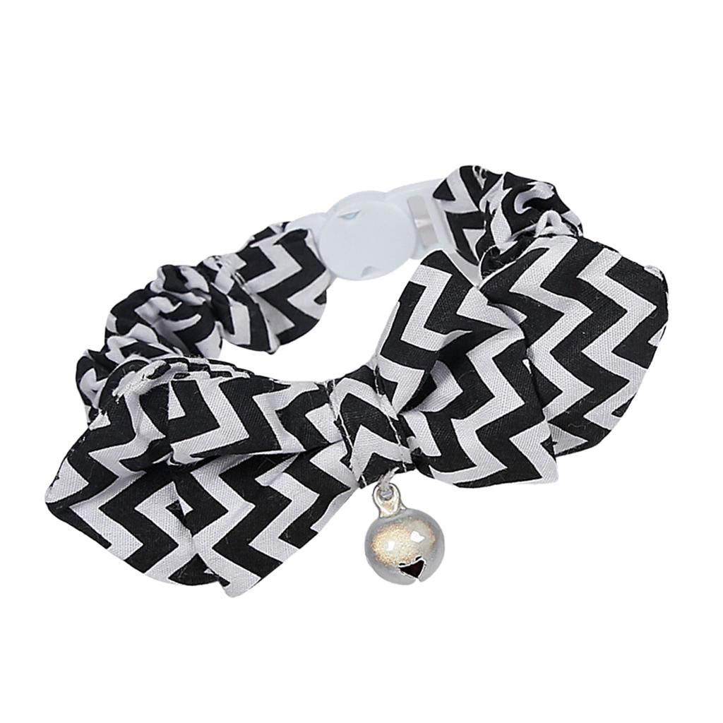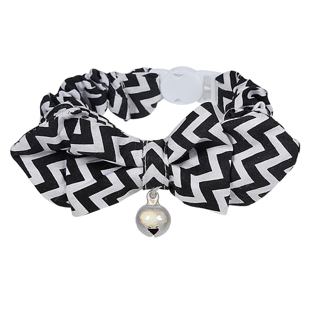 Pet Dog Cat Kitten Fashionable Bell Charms Collar Necklace Pet Lovers Gift Pet Supplies Black Wave Pattern Design