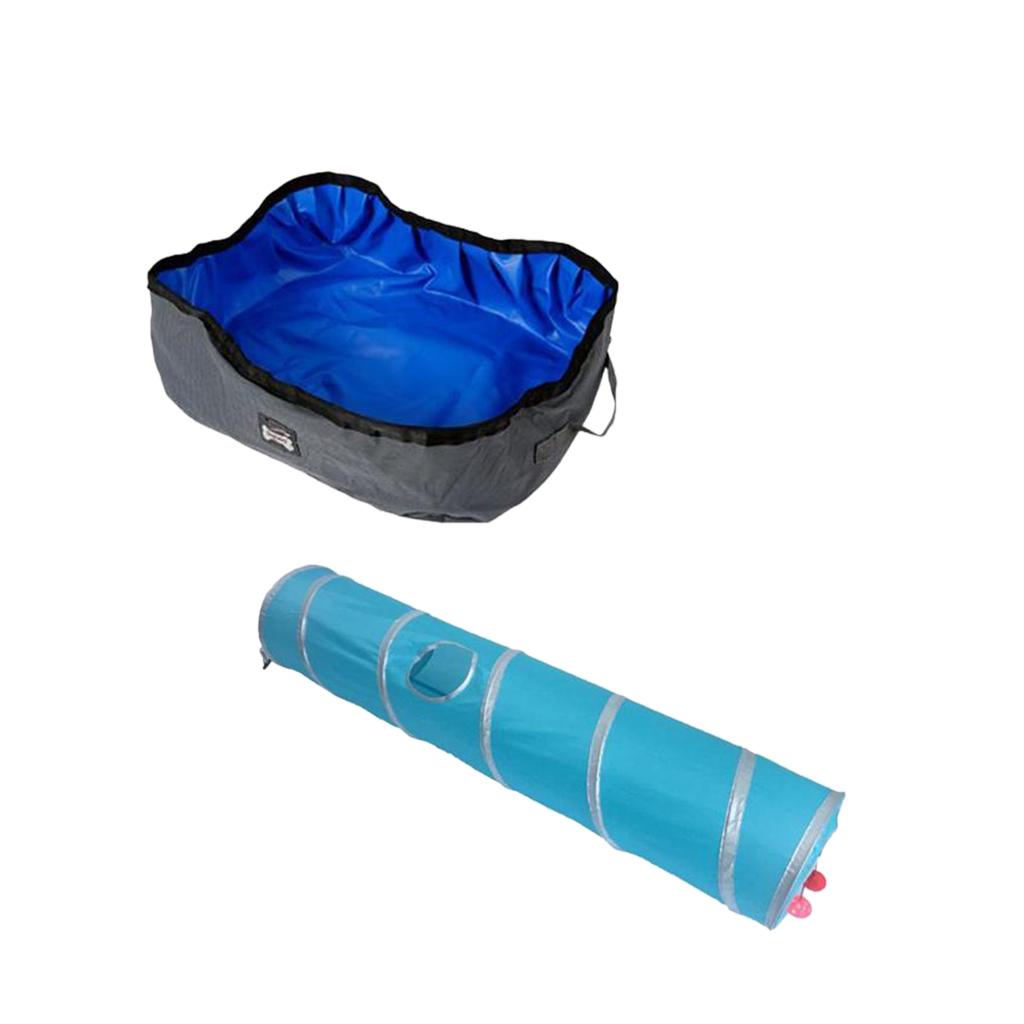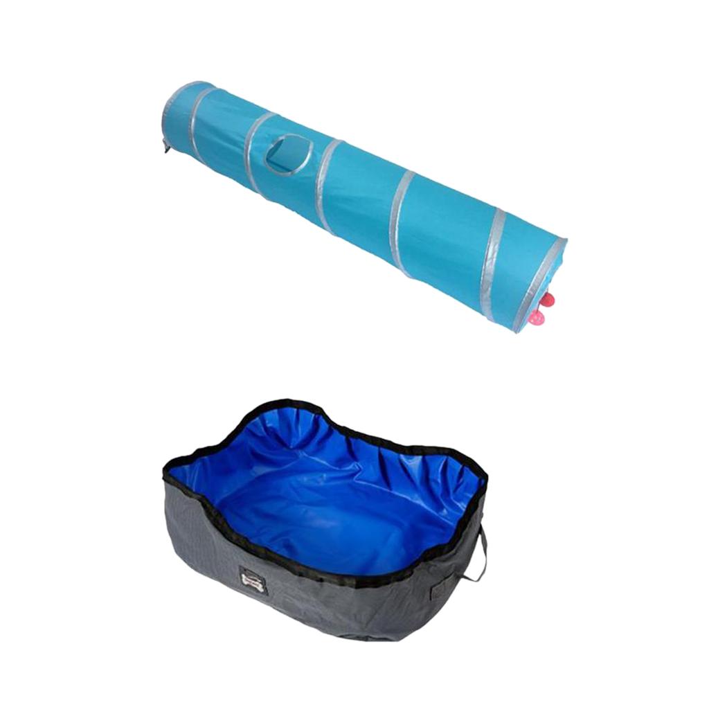 Portable Cat Litter Box Toliet Case + Collapsible Cat Tunnel Tent Kitty Tube