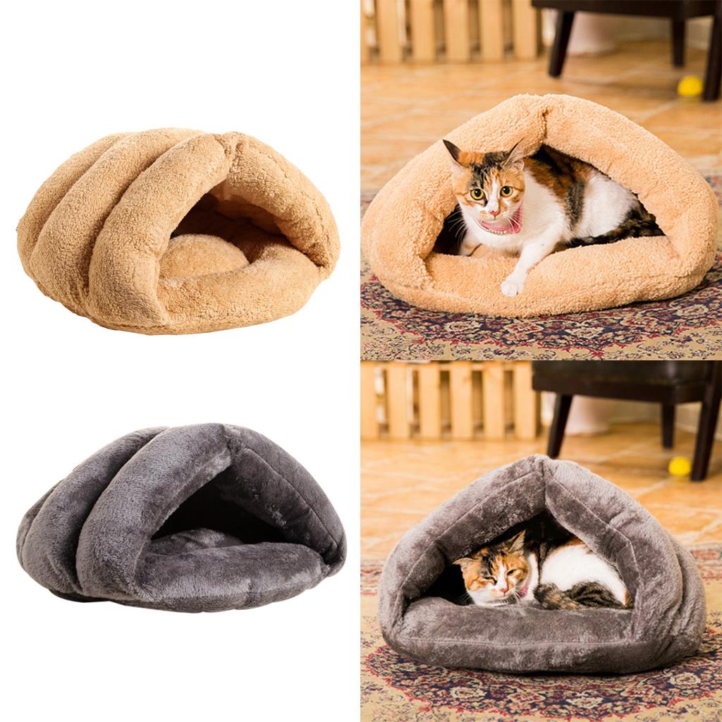 Warm Pet House Dogs Cats Bed Cushion Mat Pad Nest Cave Sleeping Bag Beige