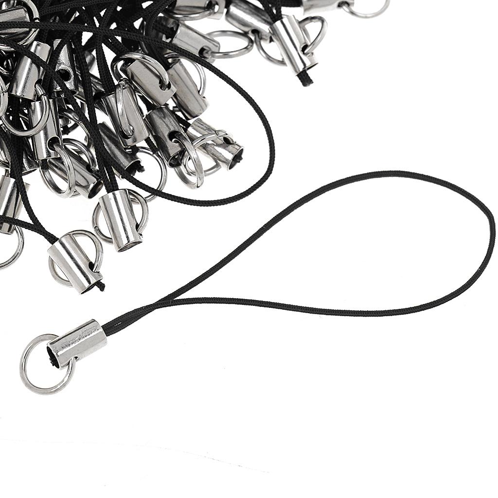 100x CELL PHONE STRAPS Strings Jump Ring End Lariats Black