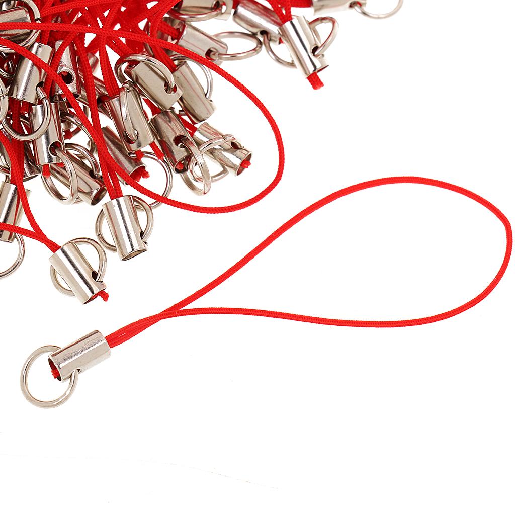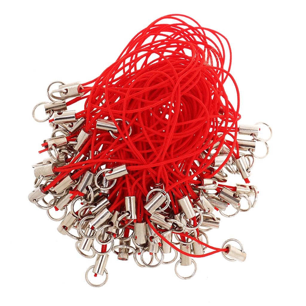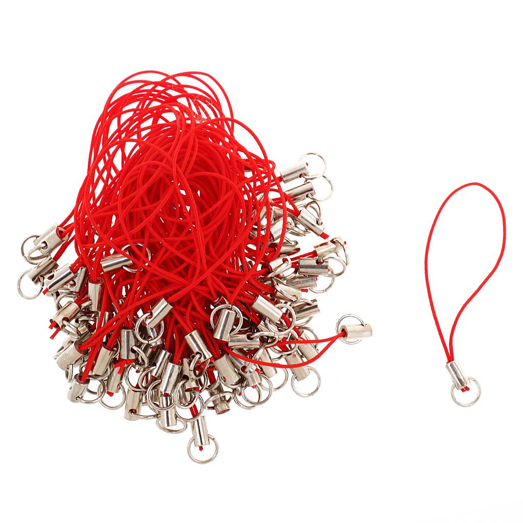 100x CELL PHONE STRAPS Strings Jump Ring End Lariats Red