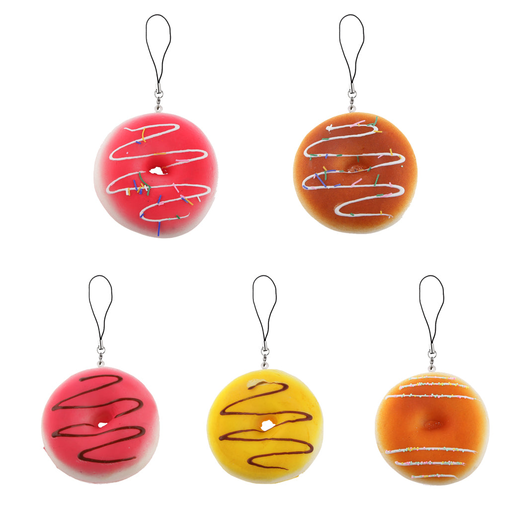 5pcs 8cm Artificial Donut Charm Pendant Cell Phone Strap Lanyard Decoration