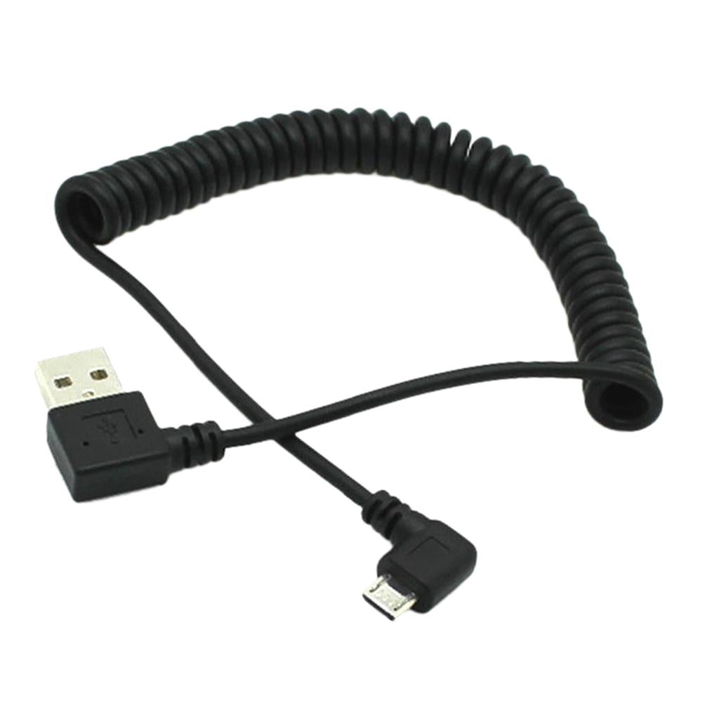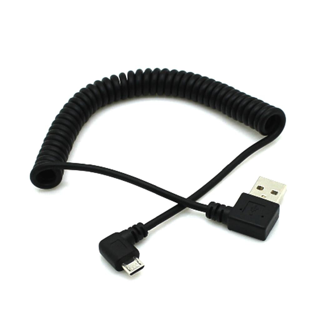 90 Degree Right Angle - Right Angle Coiled Micro USB Charging Cable, This design can avoid bending on both ends of the plug, it avoids the charging process of loose or fall off, when you need a special Angle of charging ways, this way protecting the copper wire does not distort, prolonging the life of the cord.