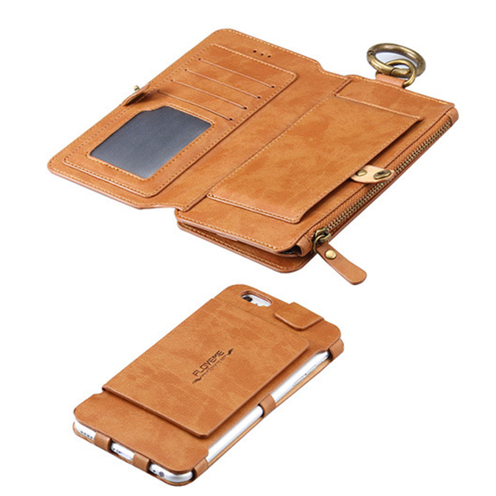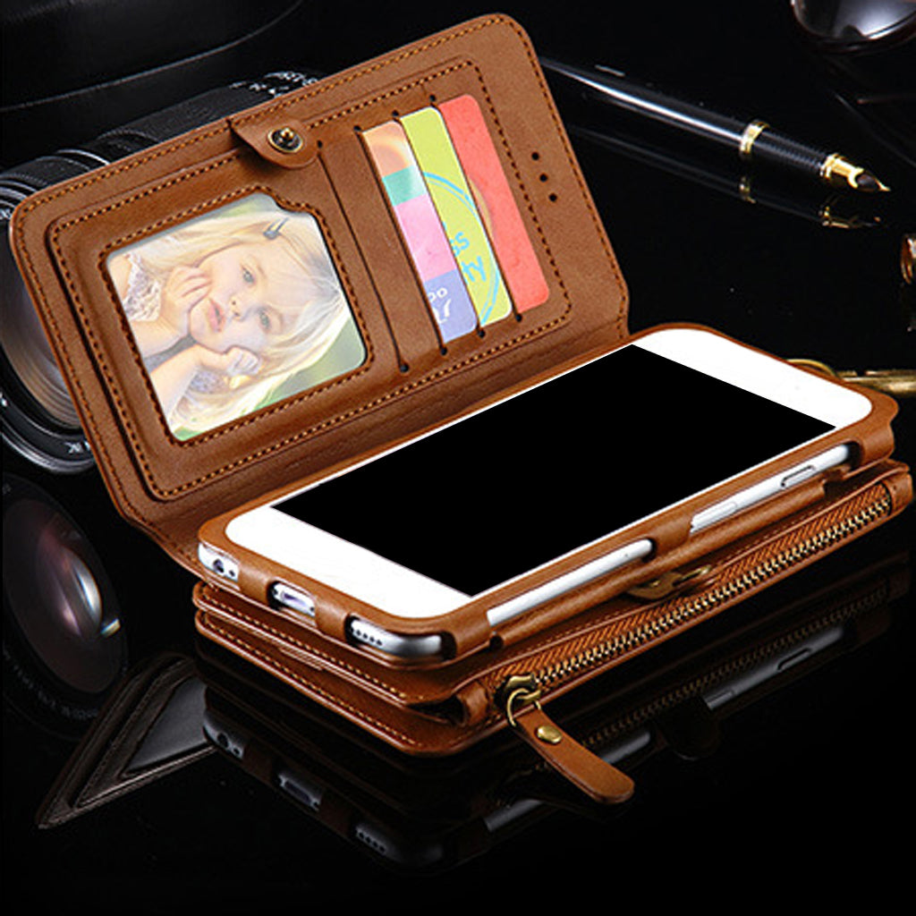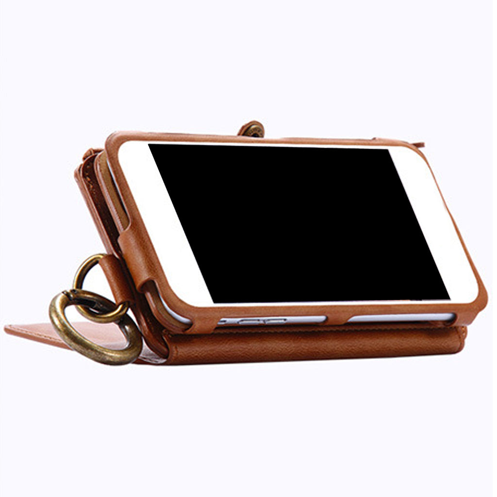 Detachable Wallet Flip Card Case Cover ID Card Money Storage Stand Cover COMPATIBLE FOR IPhone 6/6S iPhone Lovers Gift Brown