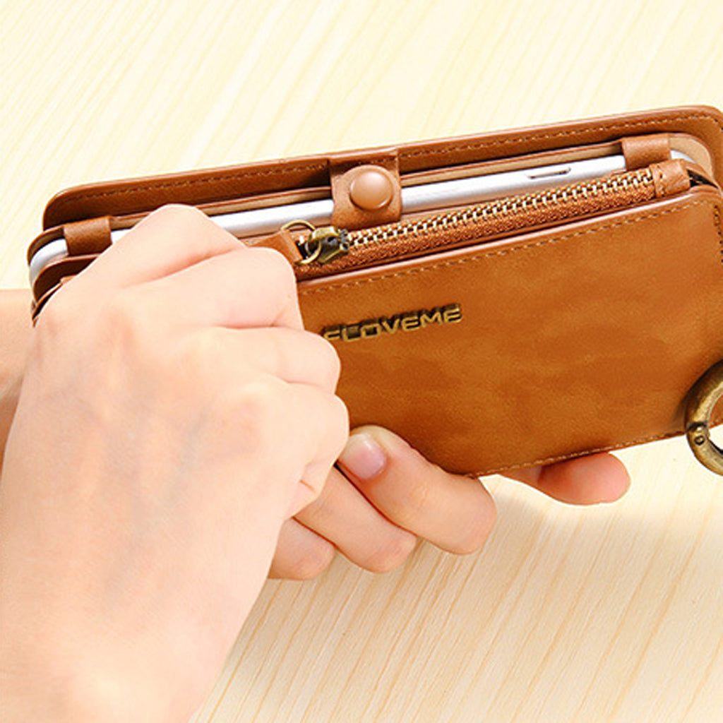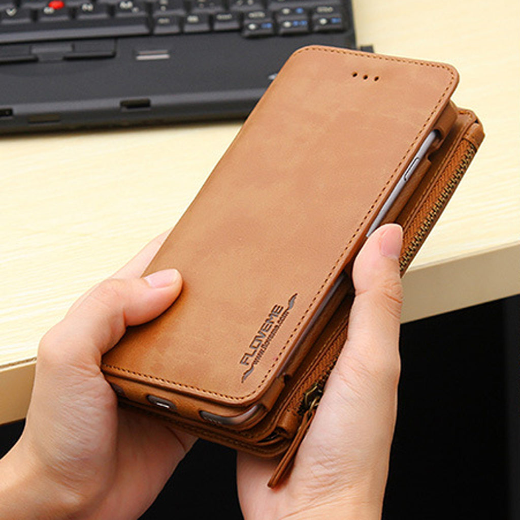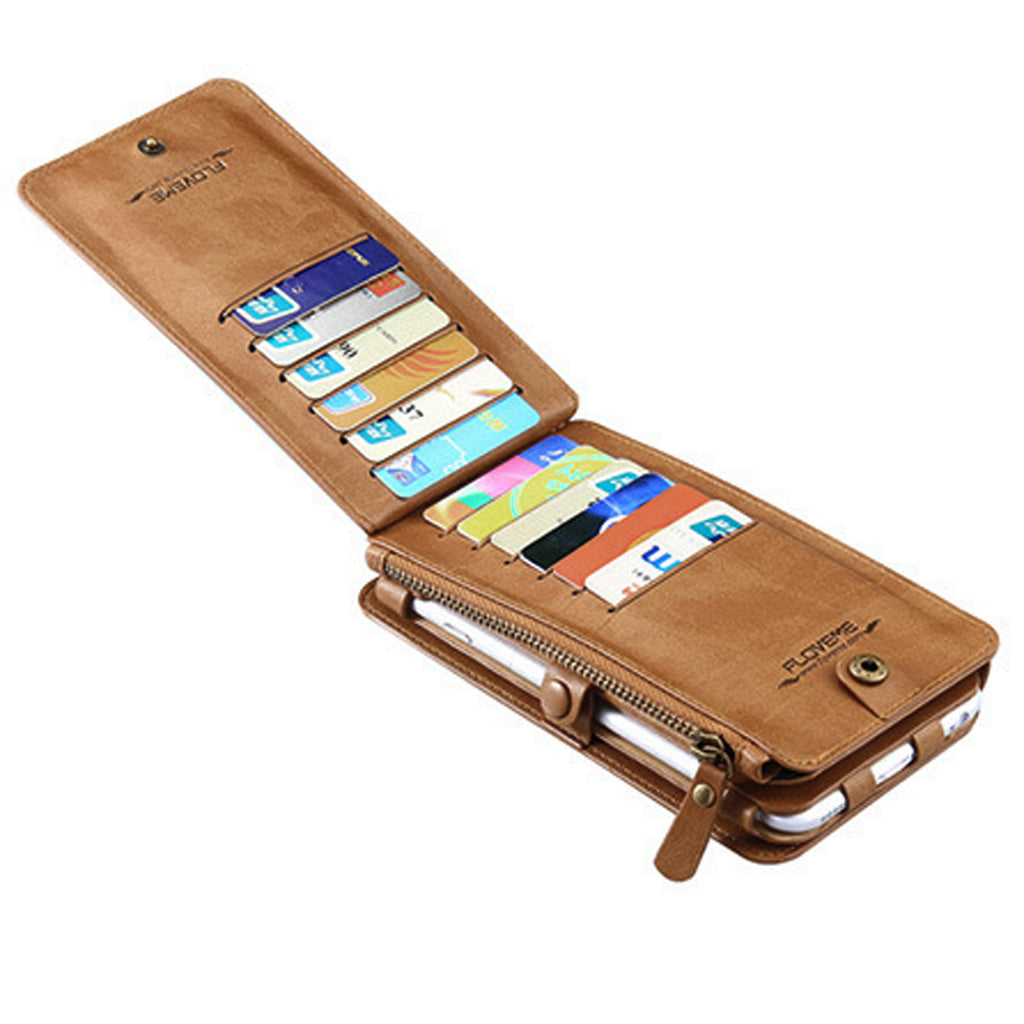 Detachable Wallet Flip Card Case Cover ID Card Money Storage Stand Cover COMPATIBLE FOR IPhone 6/6S iPhone Lovers Gift Brown