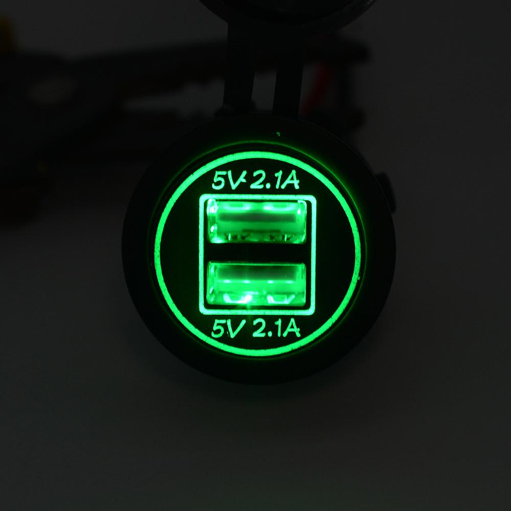 Green LED Car Motorcycle Dual USB Port Charger Power Supply Outlet 5V 4.2A