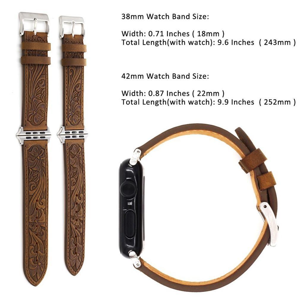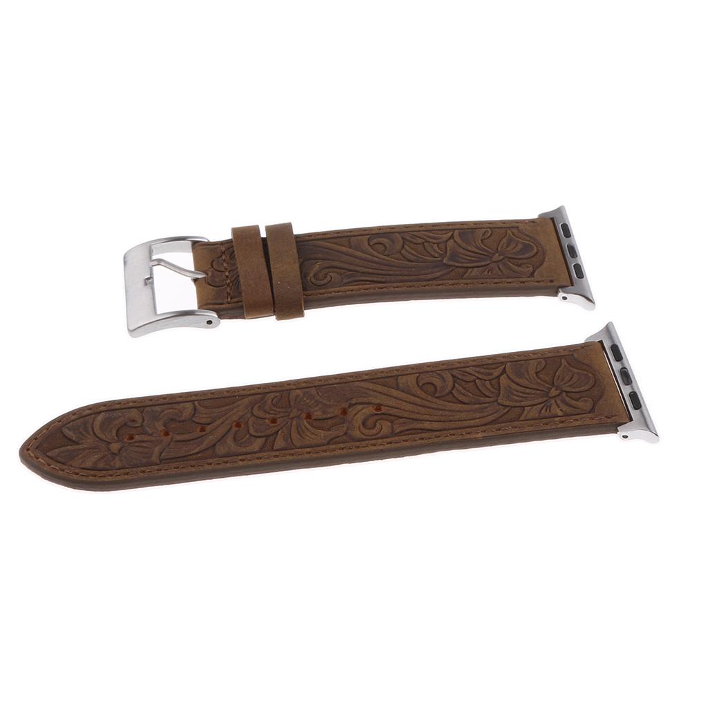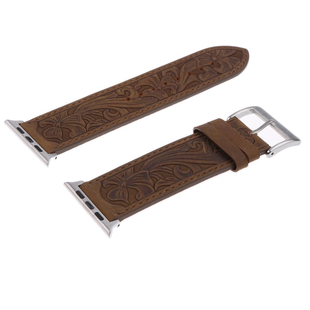 Leather Carved Watch Band: High class dynasty flowers carved on durable genuine leather, artistic, luxury and unique bumpy texture show your lifestyle.