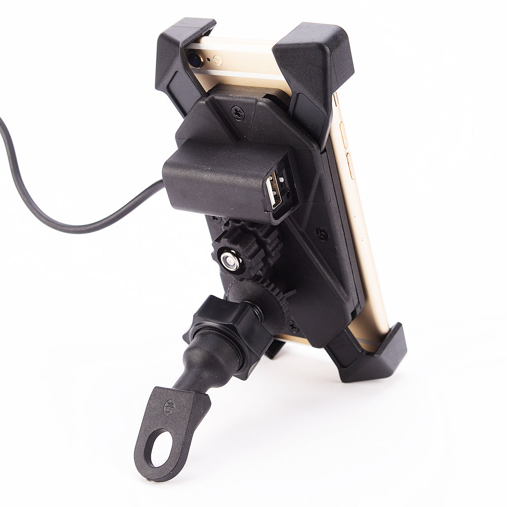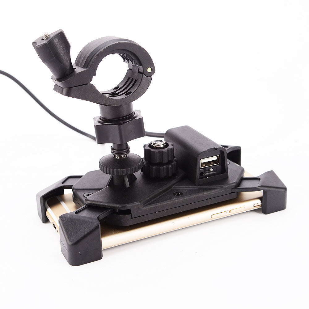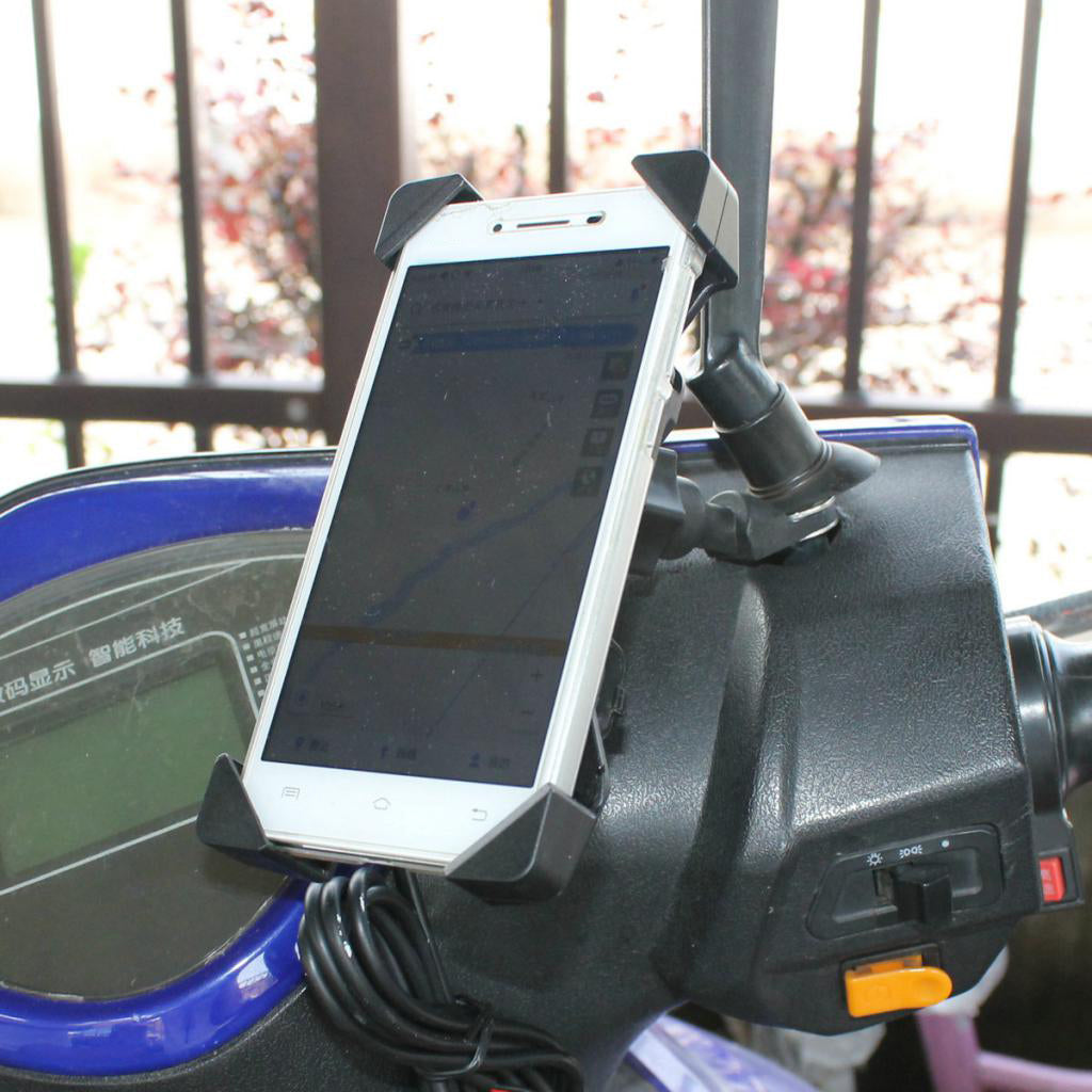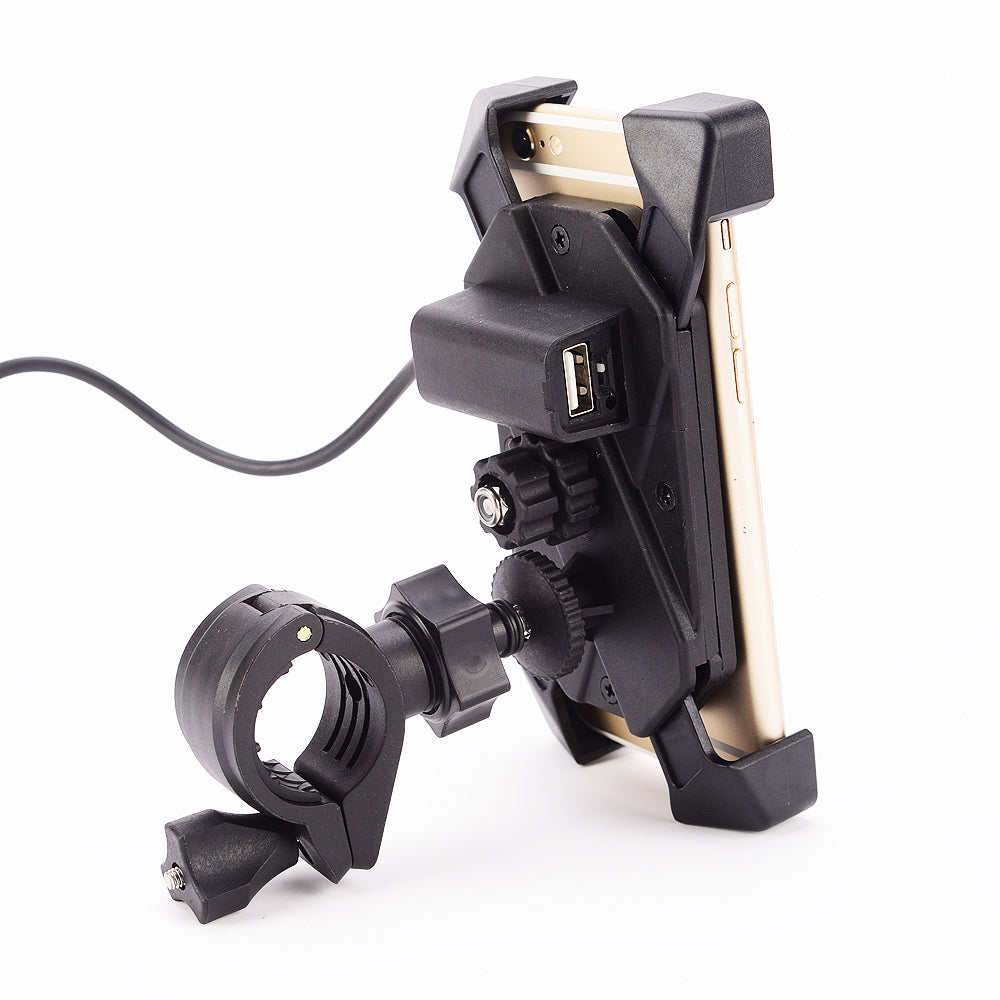 Motorbike Handlebar Universal 3.5-7" Phone Holder USB Outlet Socket Set