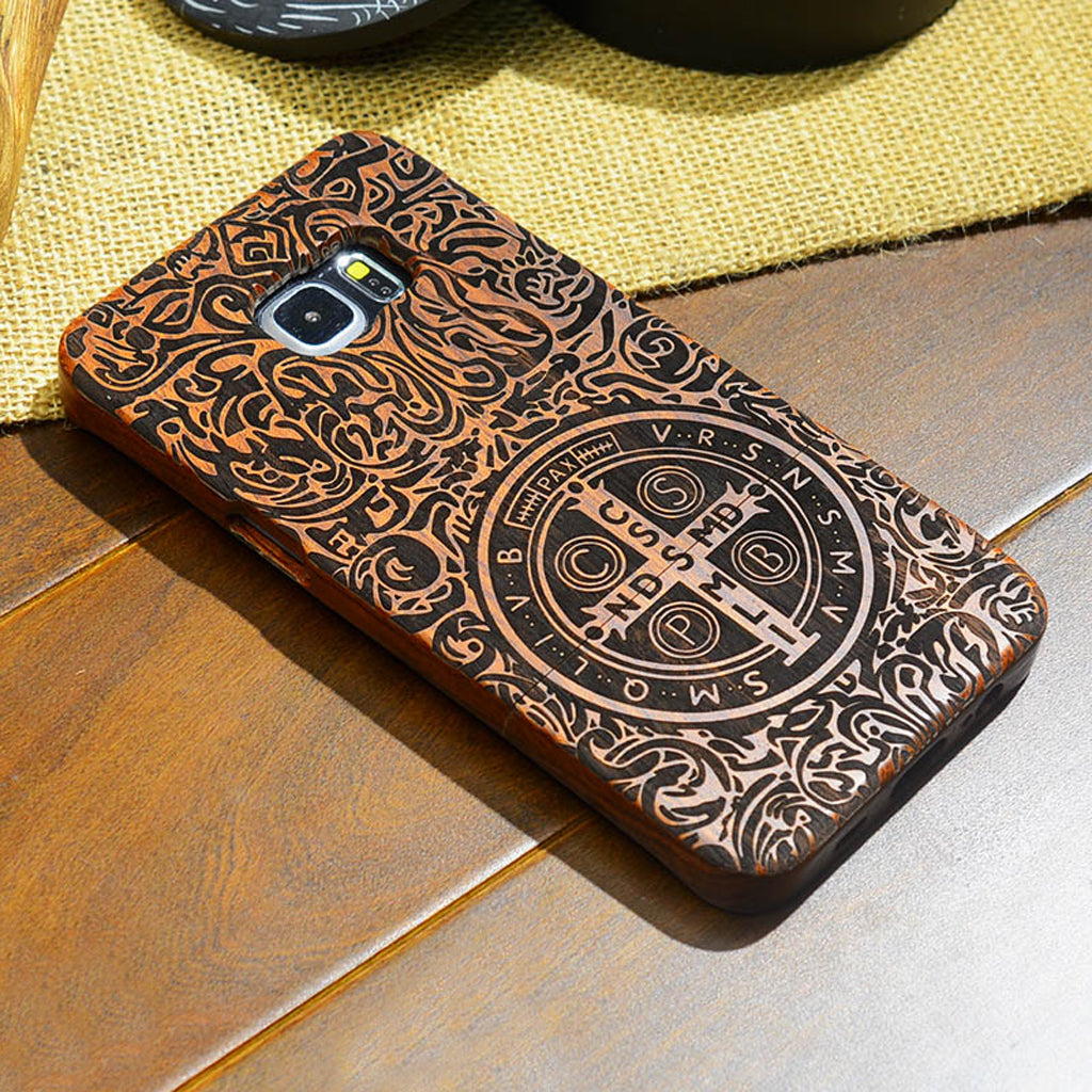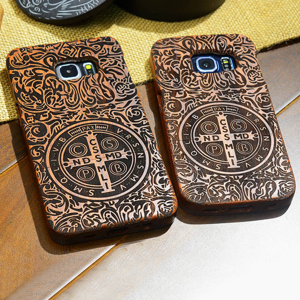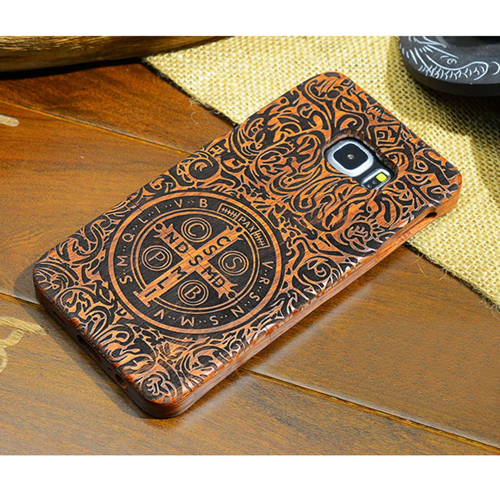 Natural Wooden Wood Carve Phone Case Cover for Samsung Galaxy S6-Constantine