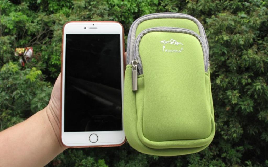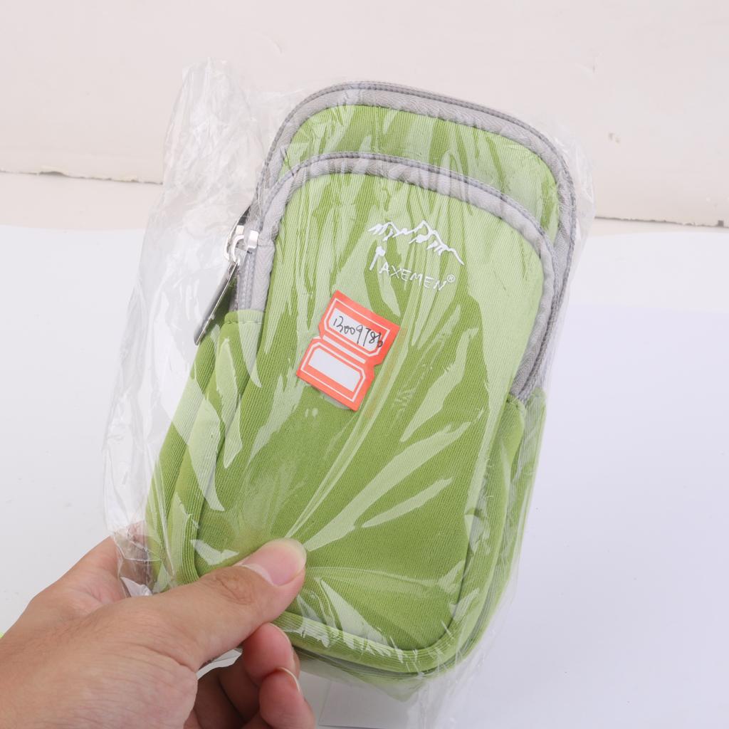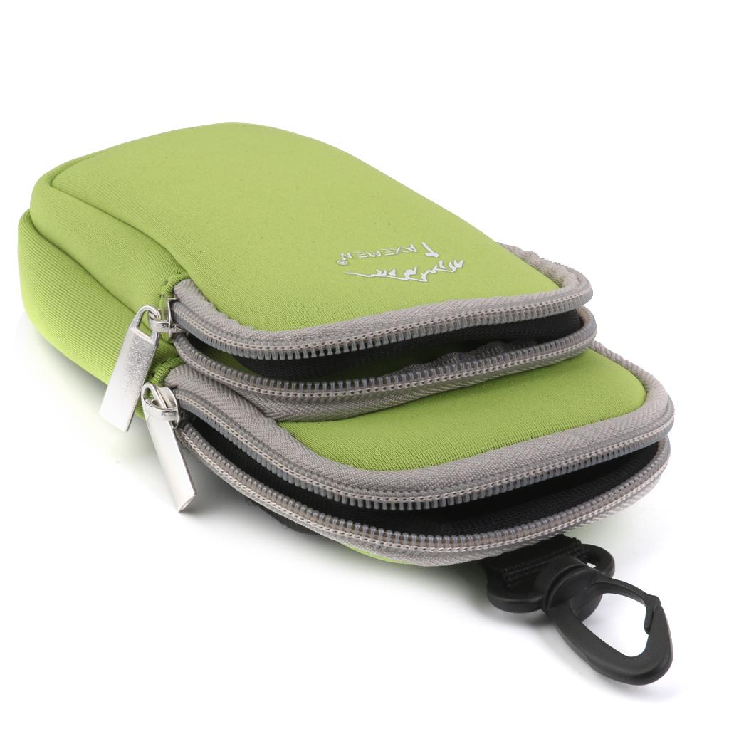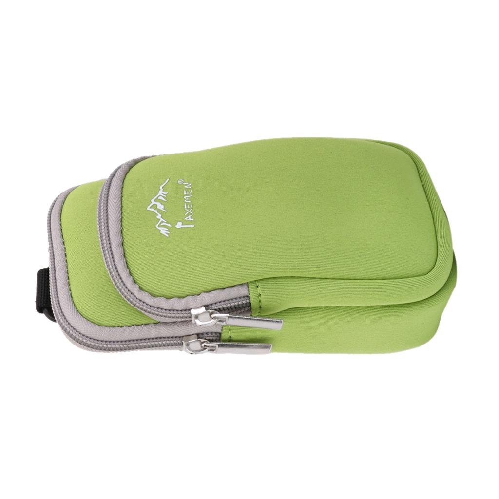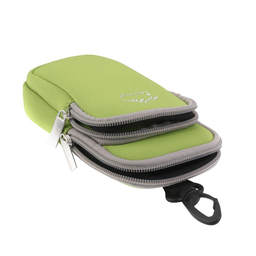 Neoprene Dual Zip Pocket Pouch Phone Bag Case for Hiking Climbing L Green