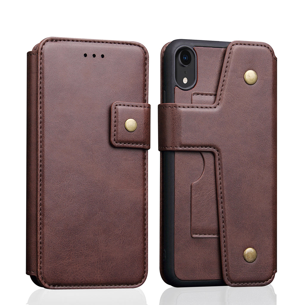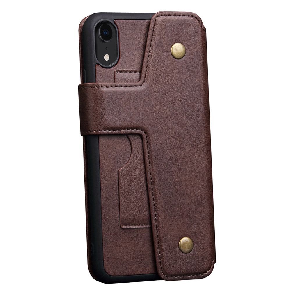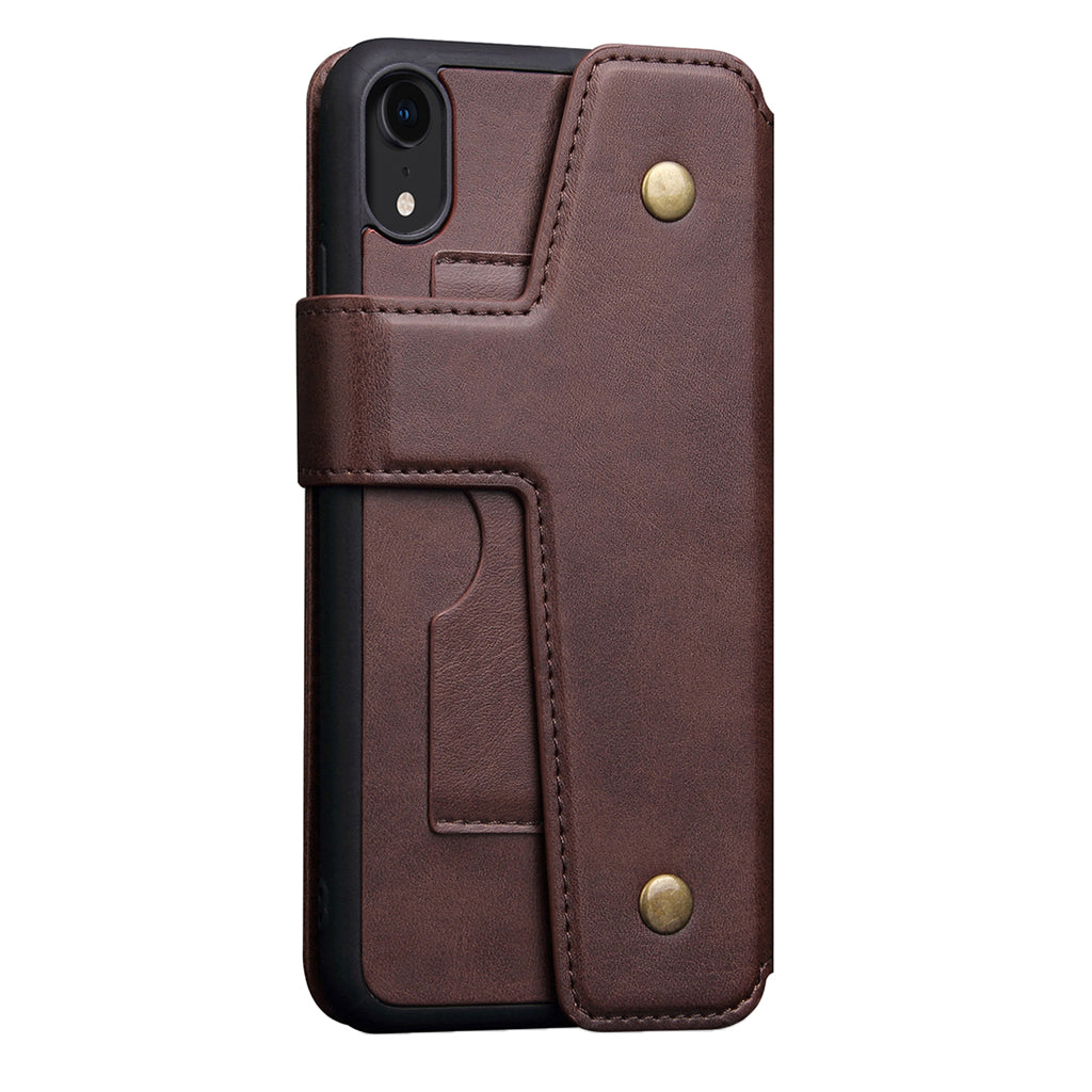 PU Leather Cover Case Multifunctional Flip Case with Card Holder, Shockproof Back Cover for iPhone XR Coffee
