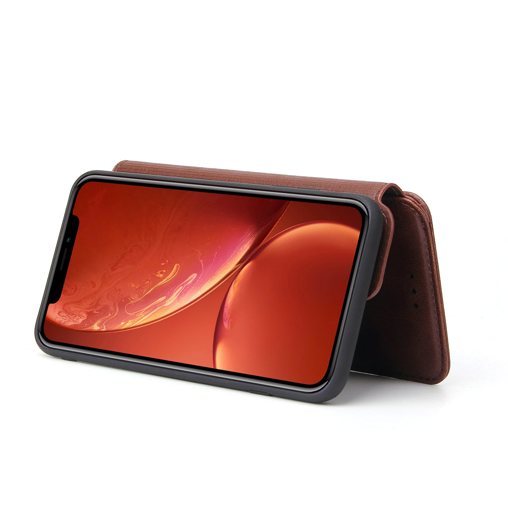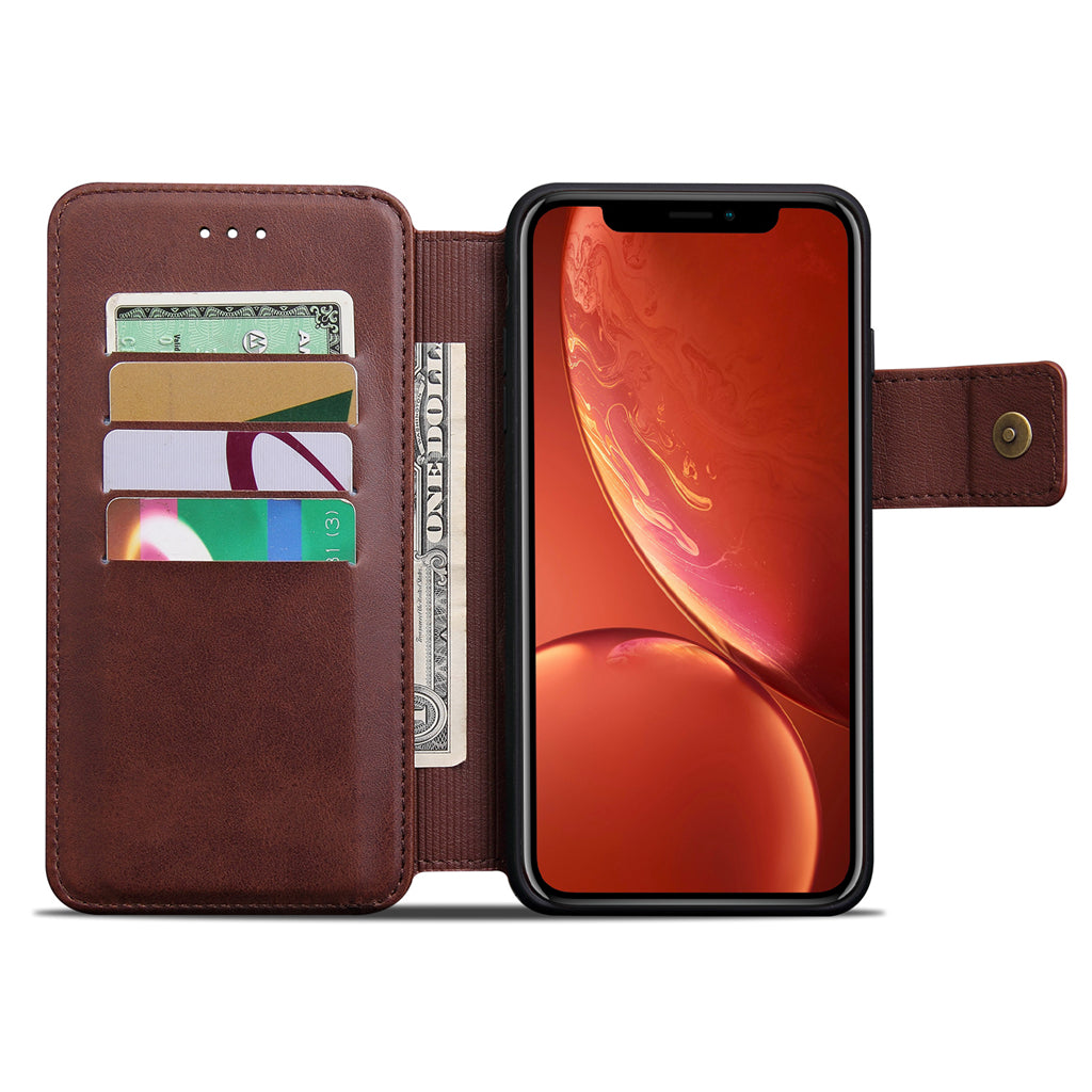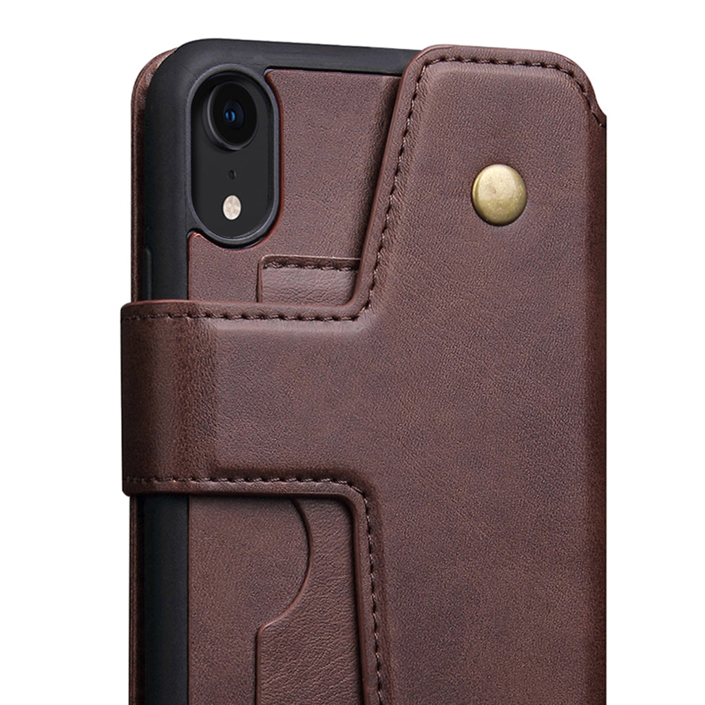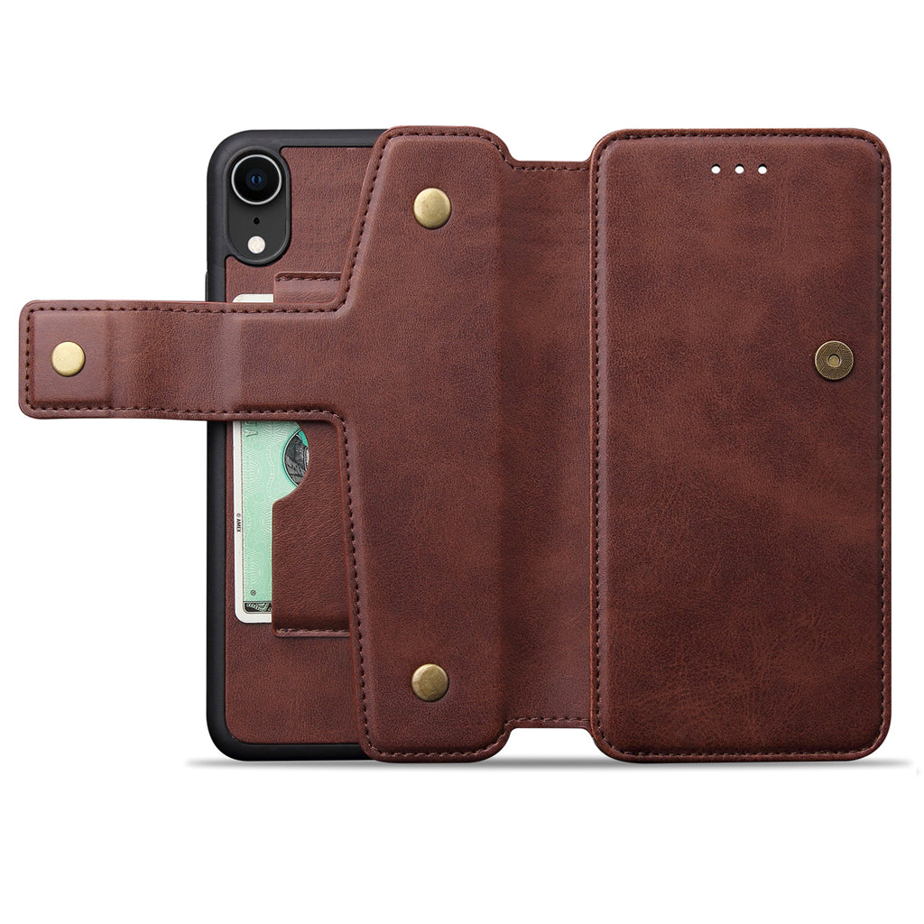 PU Leather Cover Case Multifunctional Flip Case with Card Holder, Shockproof Back Cover for iPhone XR Coffee