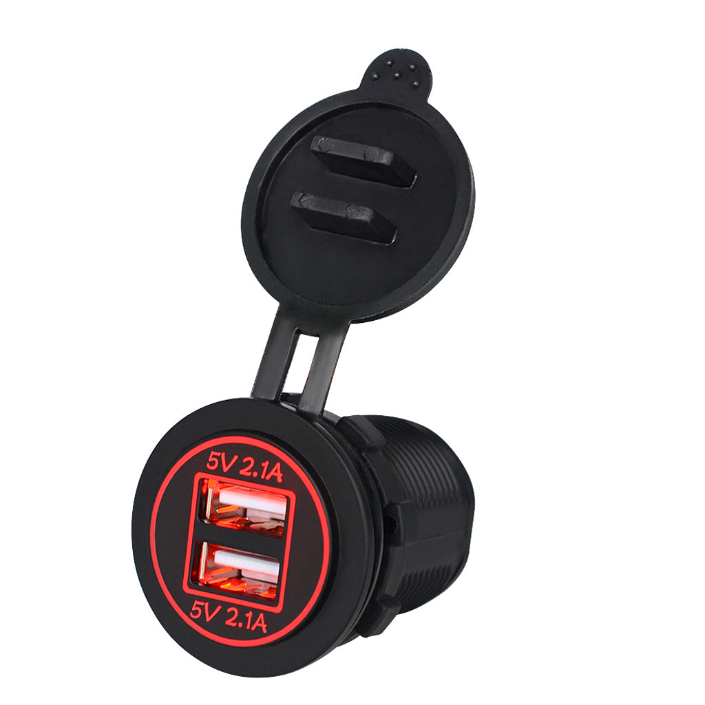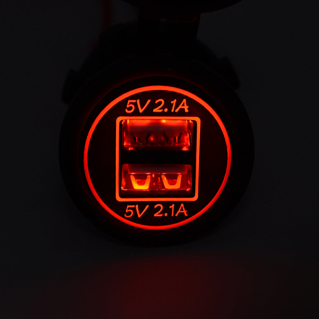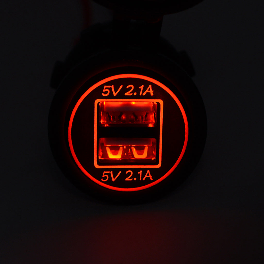 Red LED Car Motorcycle Dual USB Port Charger Power Supply Outlet 5V 4.2A