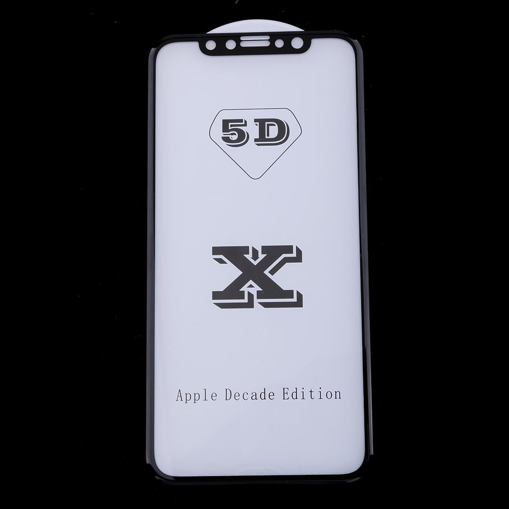 Tempered Glass Screen Protector 5D Curved Full Coverage Film Shield 9H Hardness For iPhone X Black