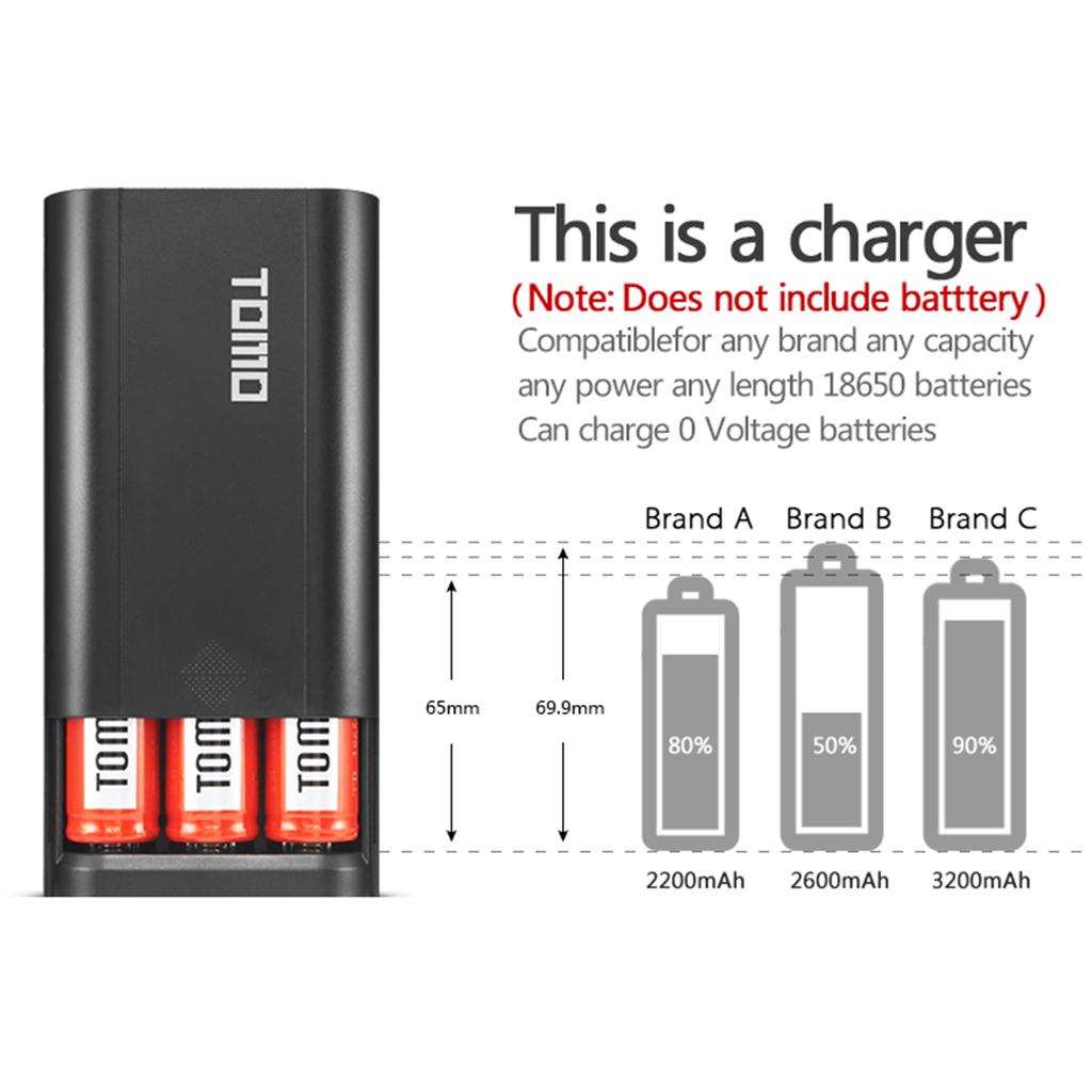 Max charge 3 x 18650 battery at one time (batteries not included)