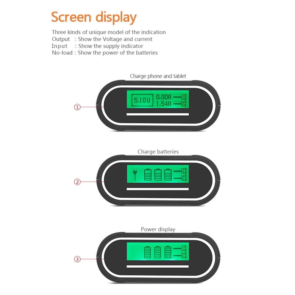 USB LCD Power Bank Battery Fast Charger Holder For 3pcs 18650 Battery Black