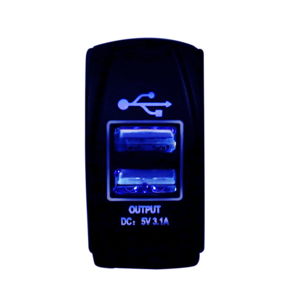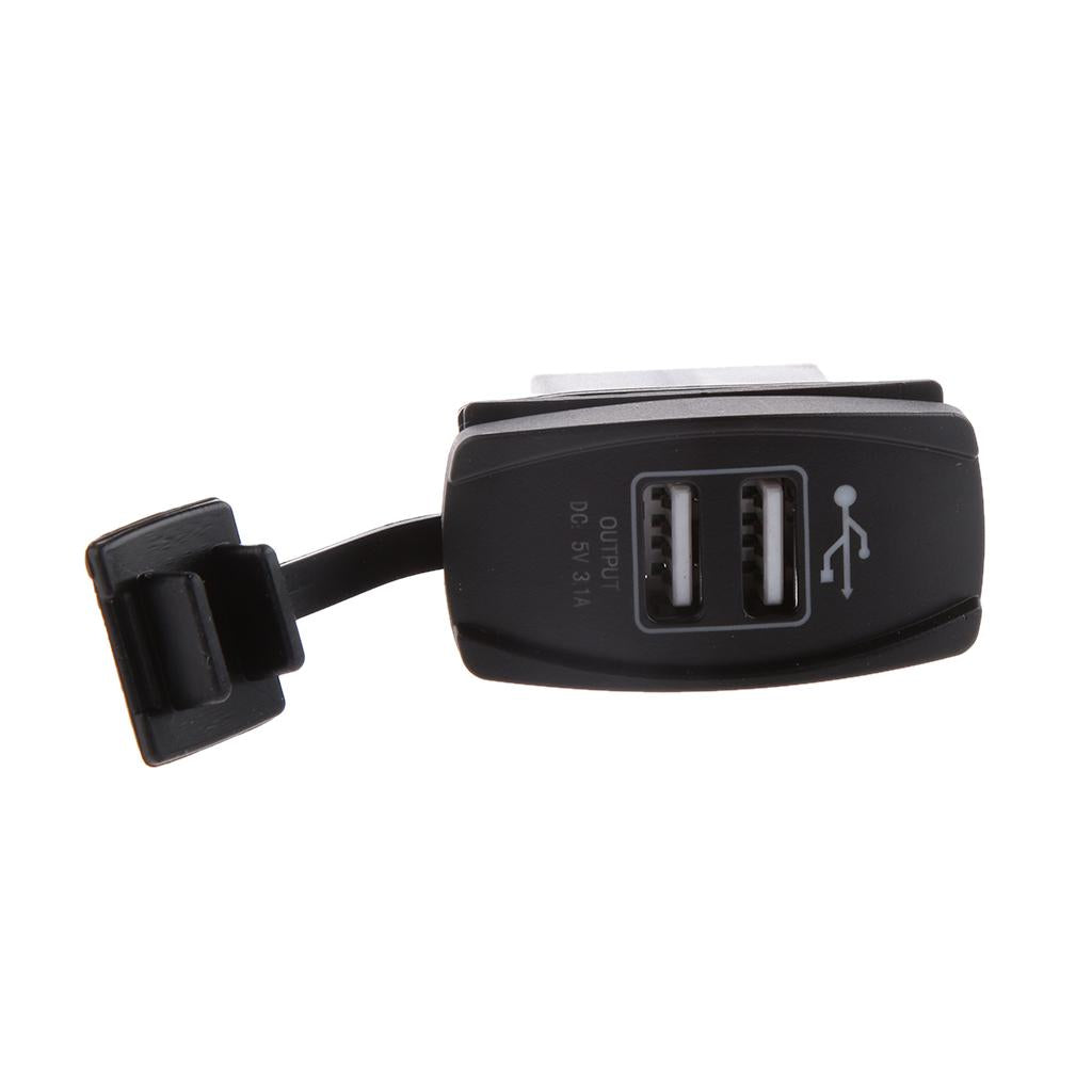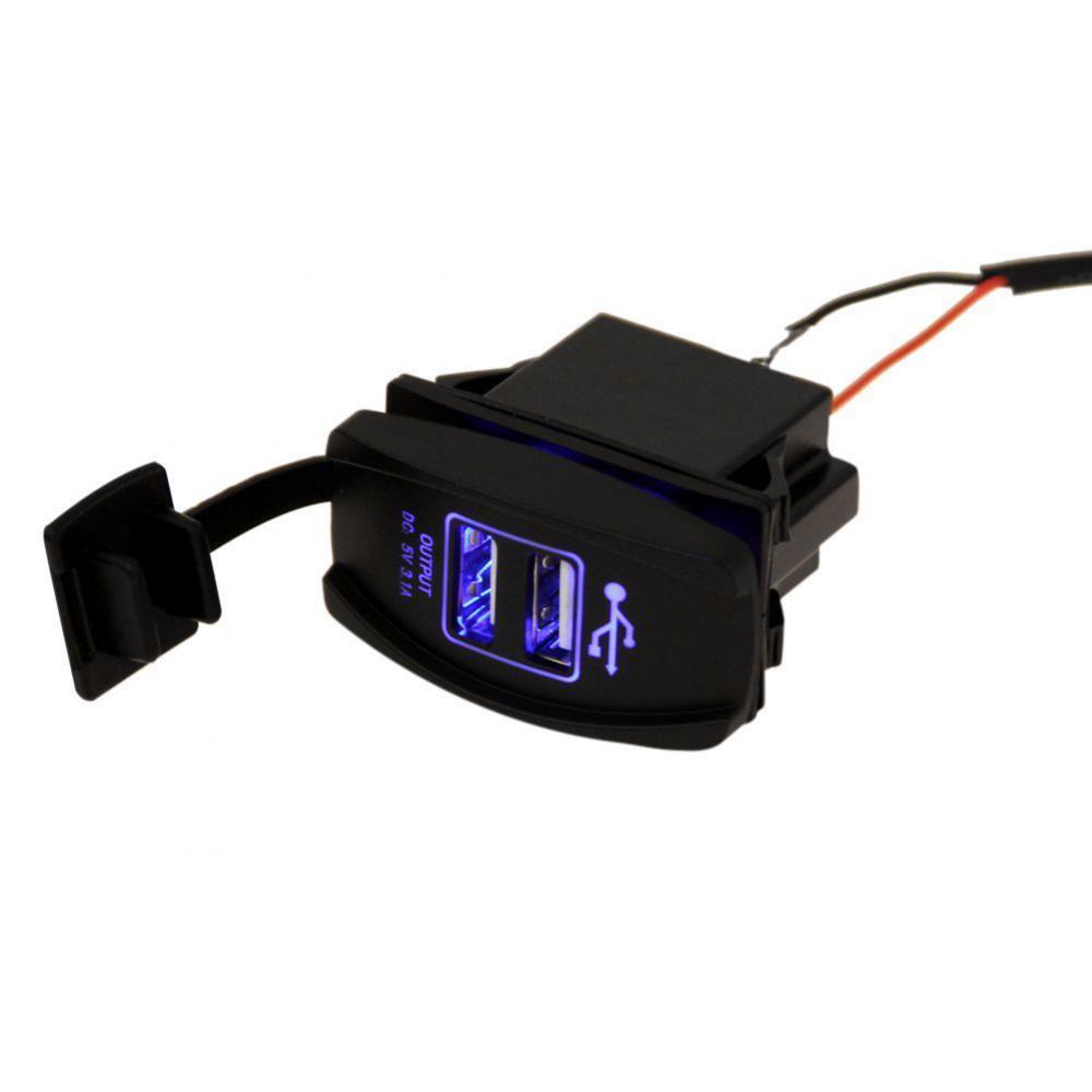 Waterproof Blue LED 12-24V 3.1A Motorcycle Car Dual USB Power Charger Socket