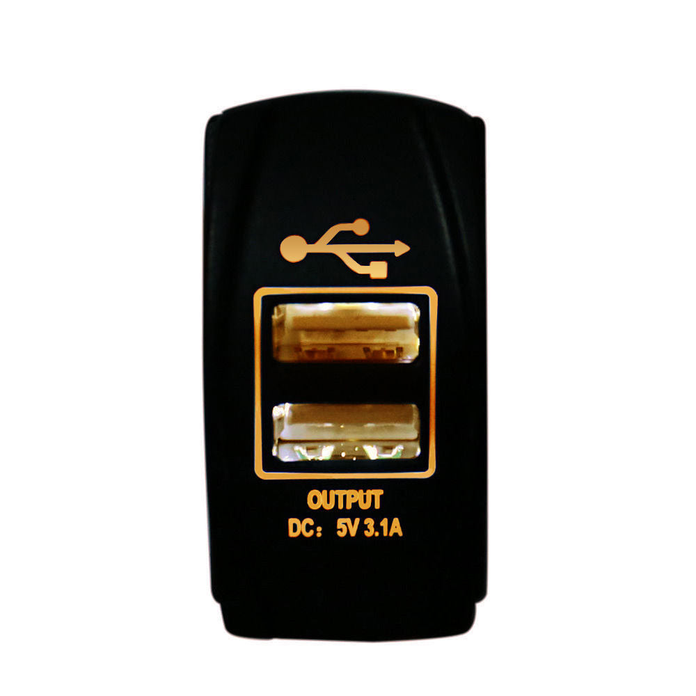 Waterproof Orange LED 12-24V Motorcycle Car Dual USB Power Charger Socket
