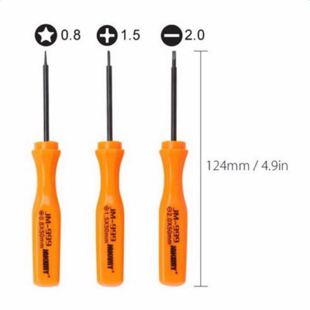 Comes with 3pcs precision screwdrivers: 0.8 Pentalobe, 1.5 Phillips and Flat head screwdriver.