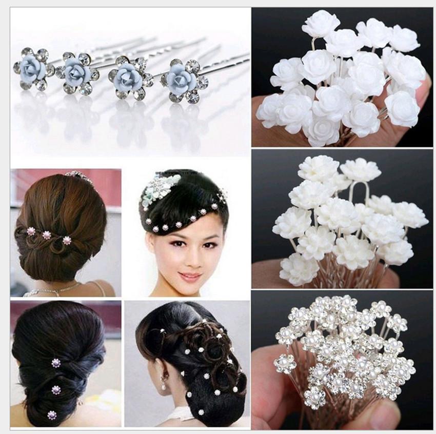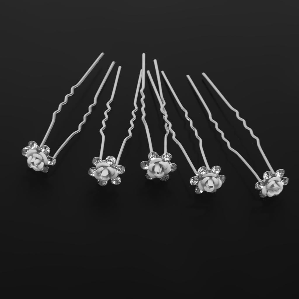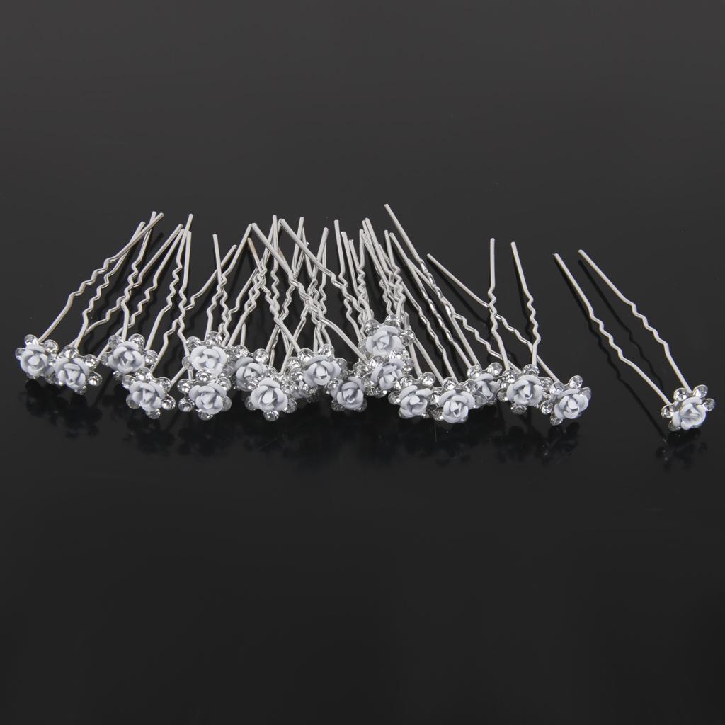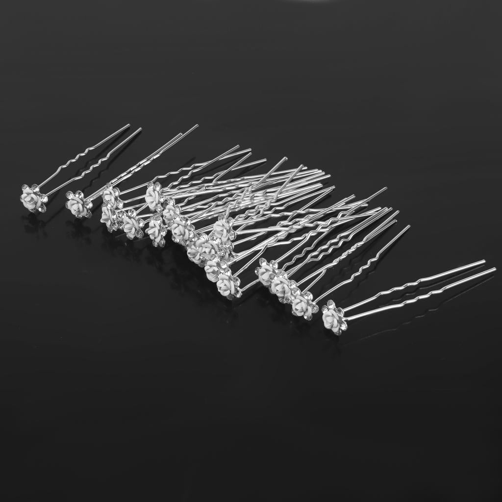 18pcs Wedding Bridal Bridesmaid Crystal Rose Flower Hair Pins Clip Headpiece