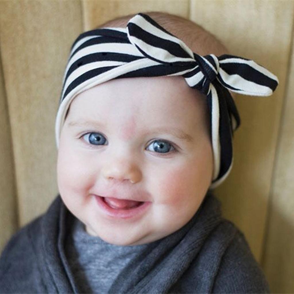 Baby Girls Bunny Cute Kids Turban Knot Rabbit Headband Bow Hair Band Blue