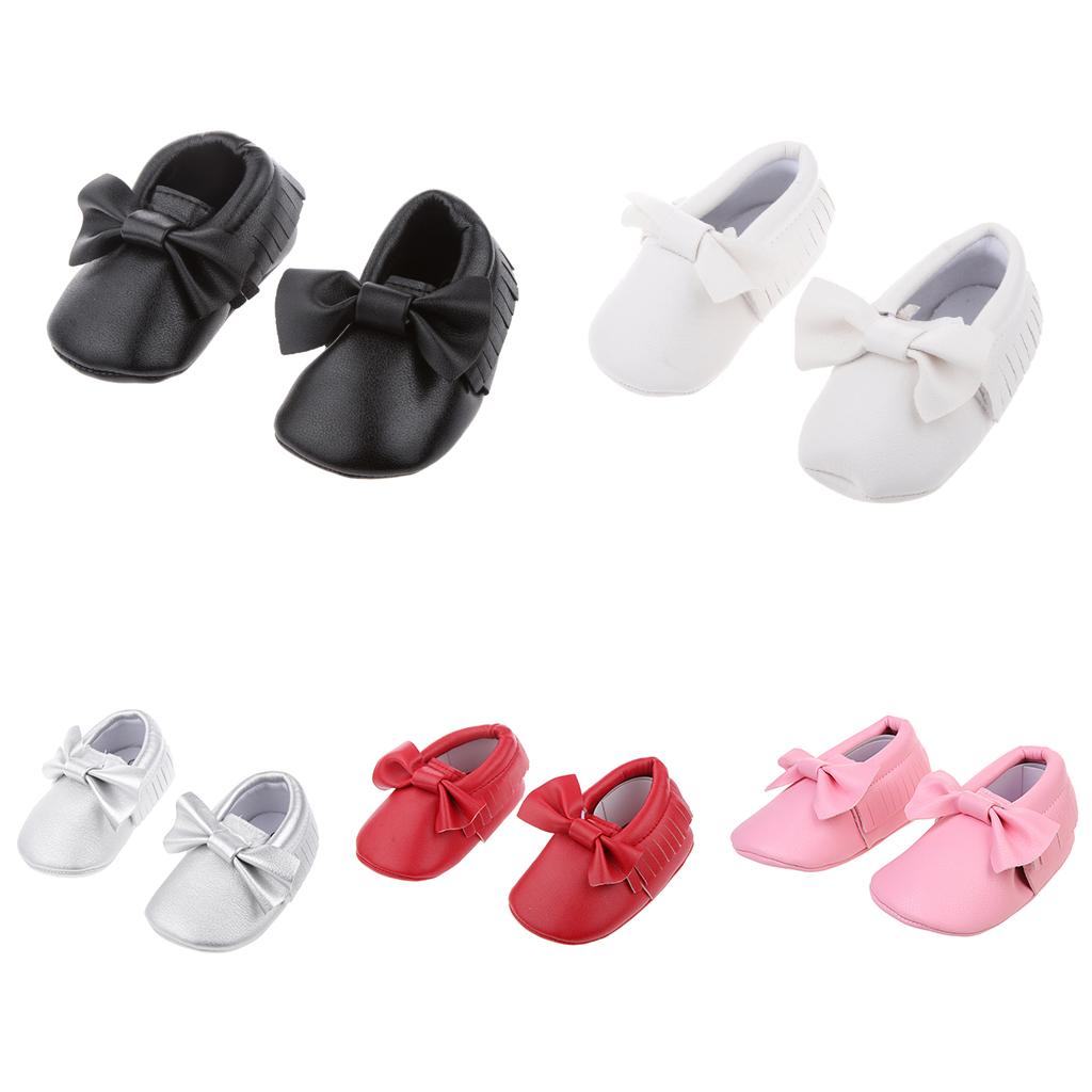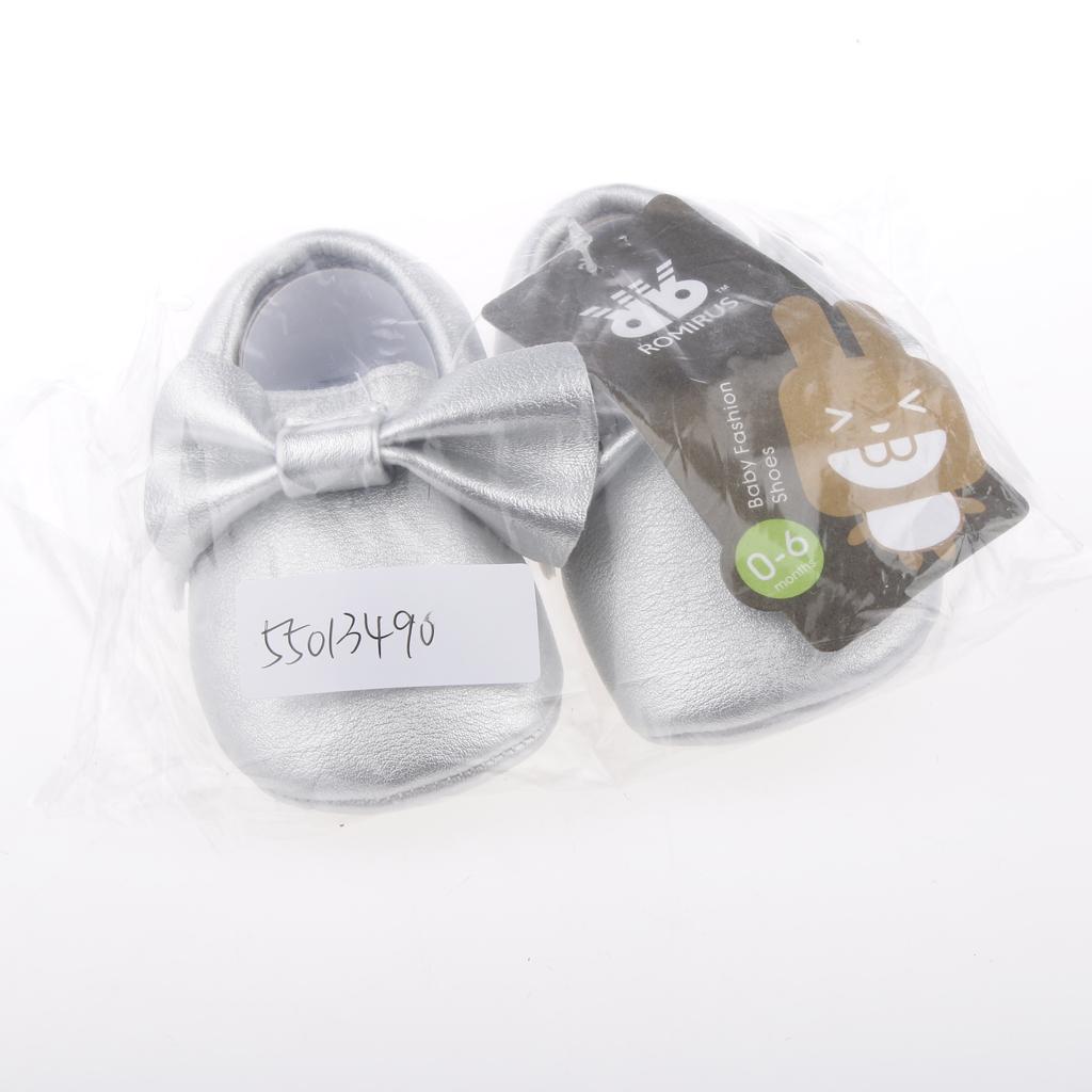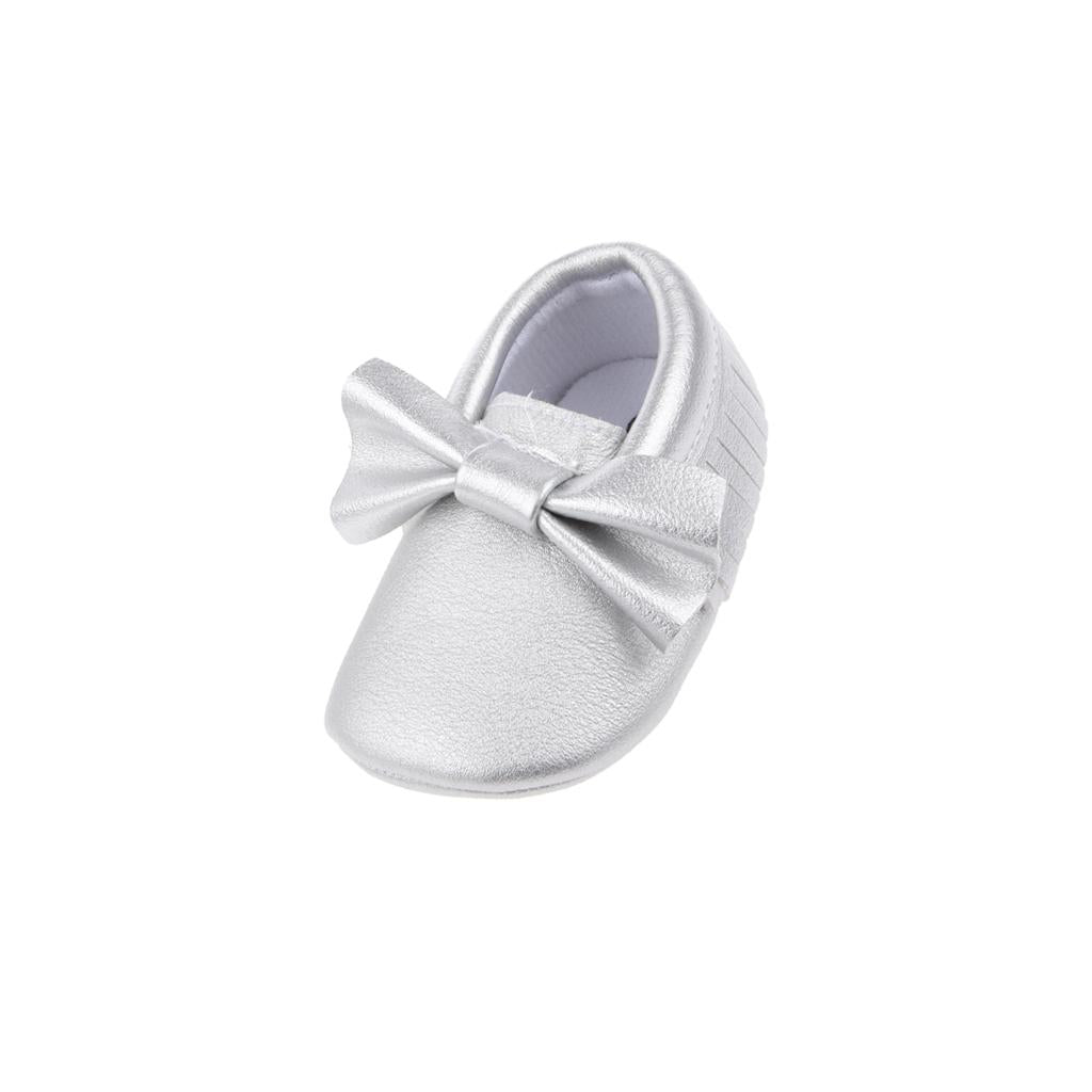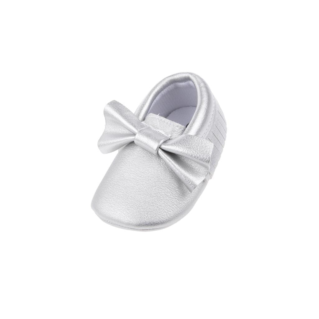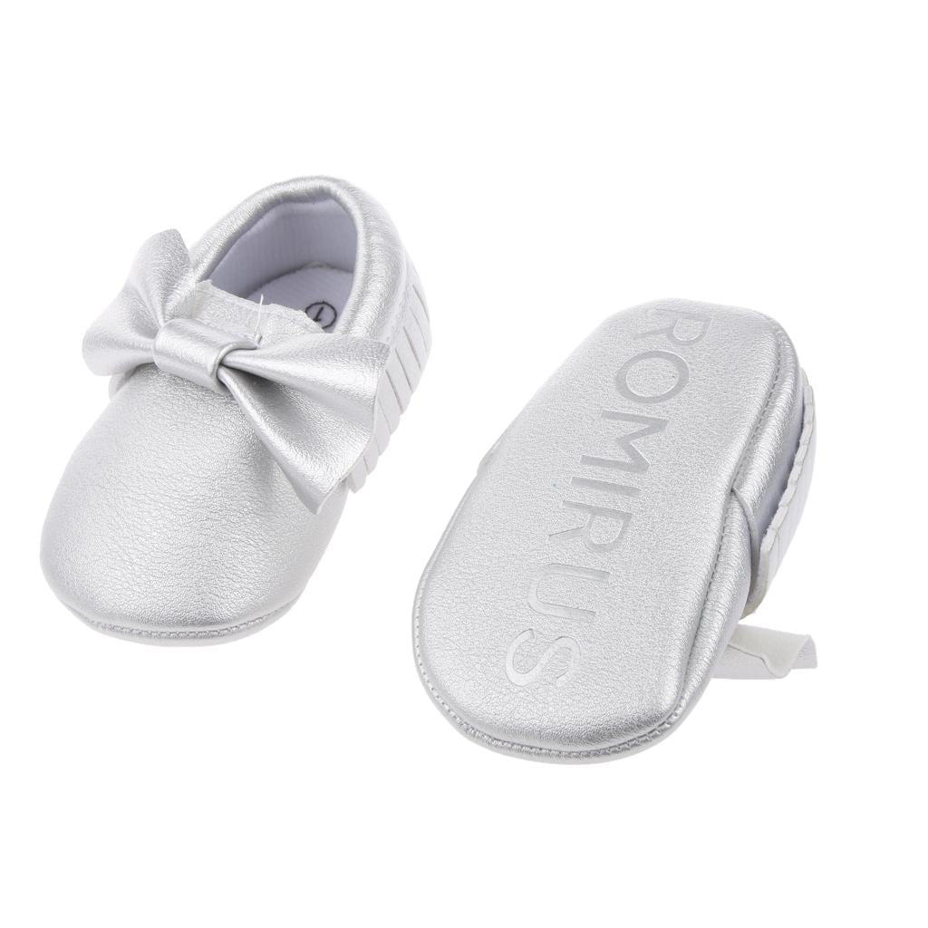 Baby Kids Bowknot Soft Sole Moccasin Toddler Leather Crib Shoes 11cm Silver