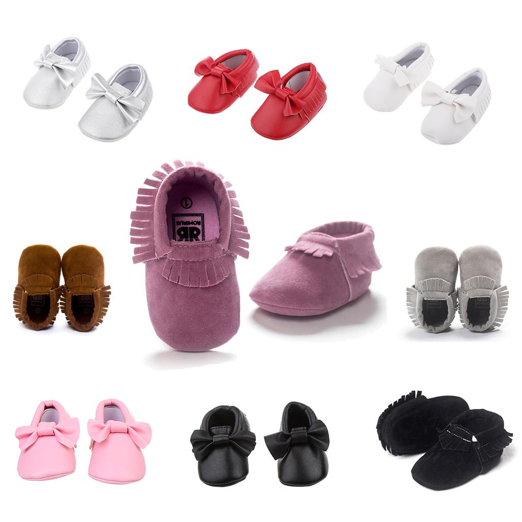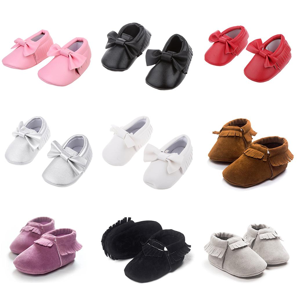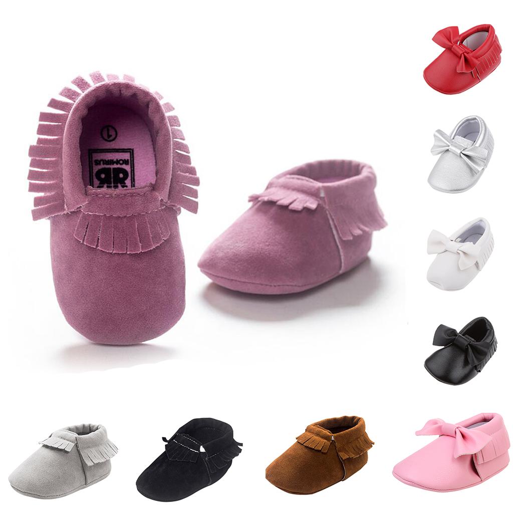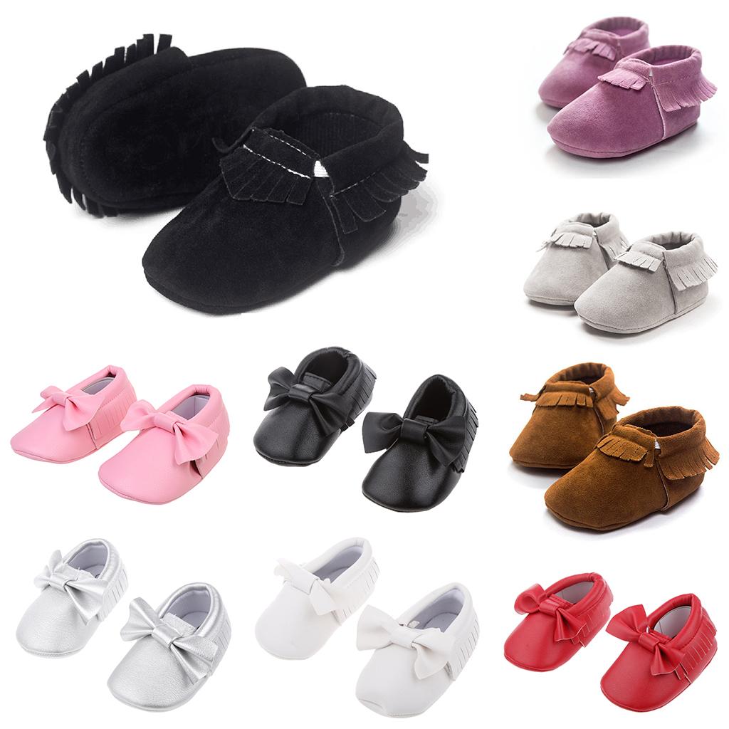 Baby Kids Bowknot Soft Sole Moccasin Toddler Leather Crib Shoes 11cm Silver