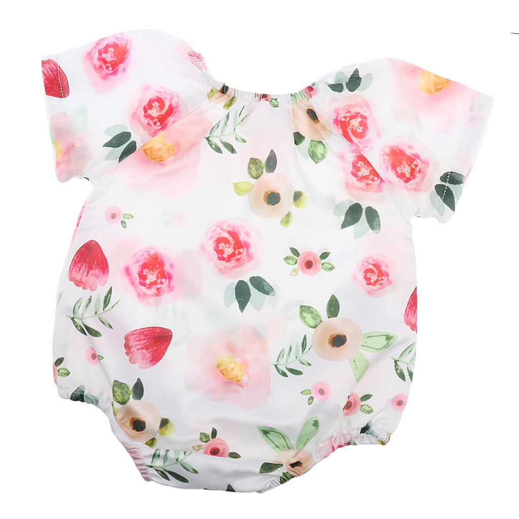 Baby Rompers Dress Short Sleeve Floral Jumpsuits One-Pieces Pants 100cm
