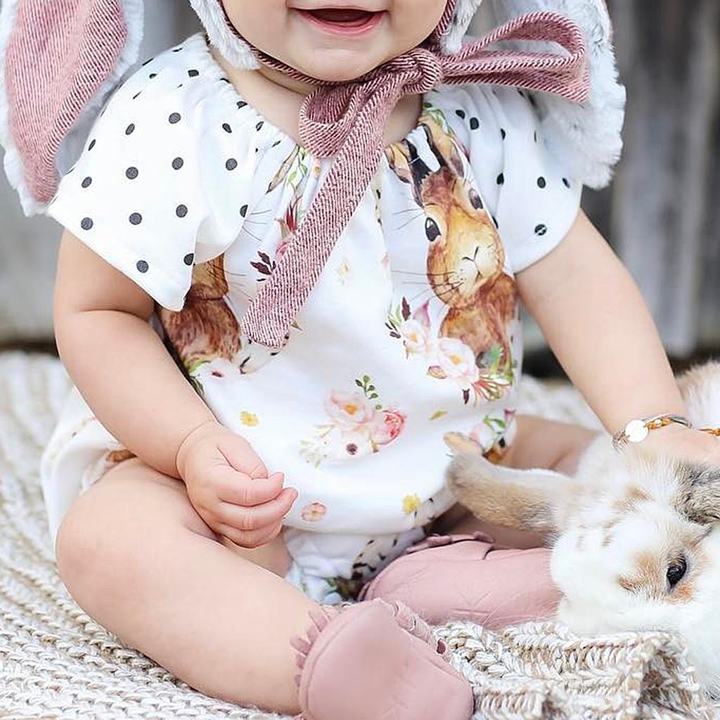 Baby Rompers Dress Short Sleeve Rabbit Dots Jumpsuits One-Pieces Pants 100