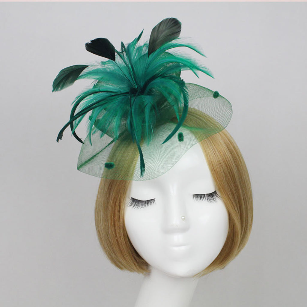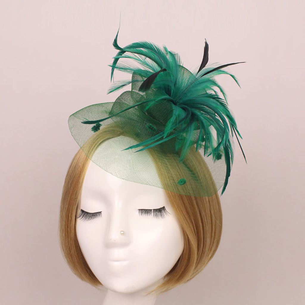 Bridal Mini Top Hat Feather Hair Clip Fascinator Party Headpiece Dark Green