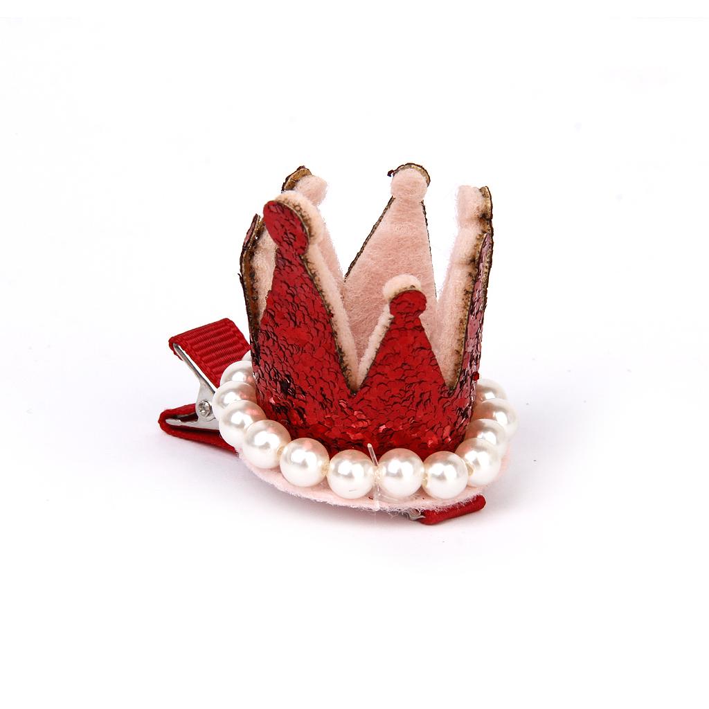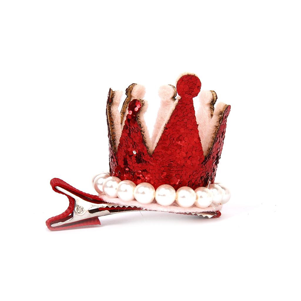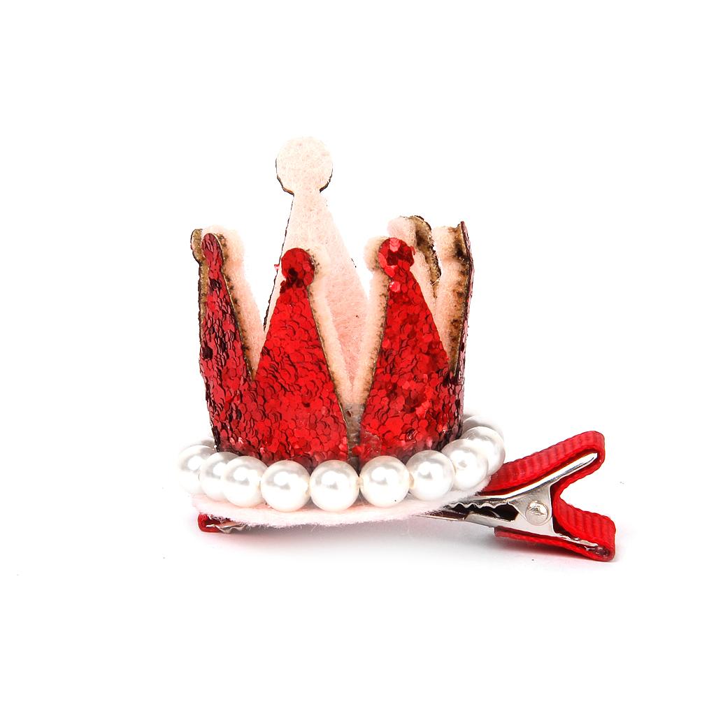 Child Baby Girl Crown Party Alligator Hair Barrette Clip Hairpin - Red sequins