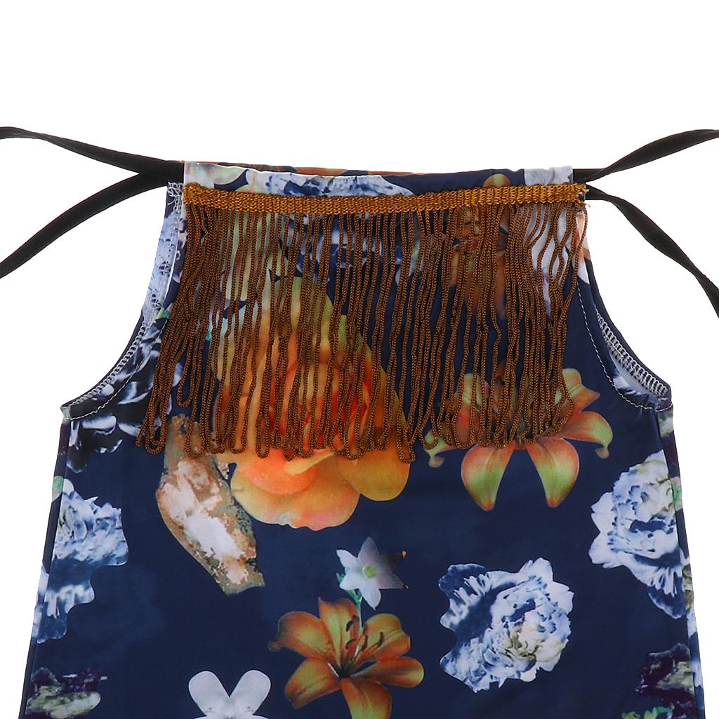 Features: One-Pieces, sling pants, tassel floral printed, backless, sleeveless.