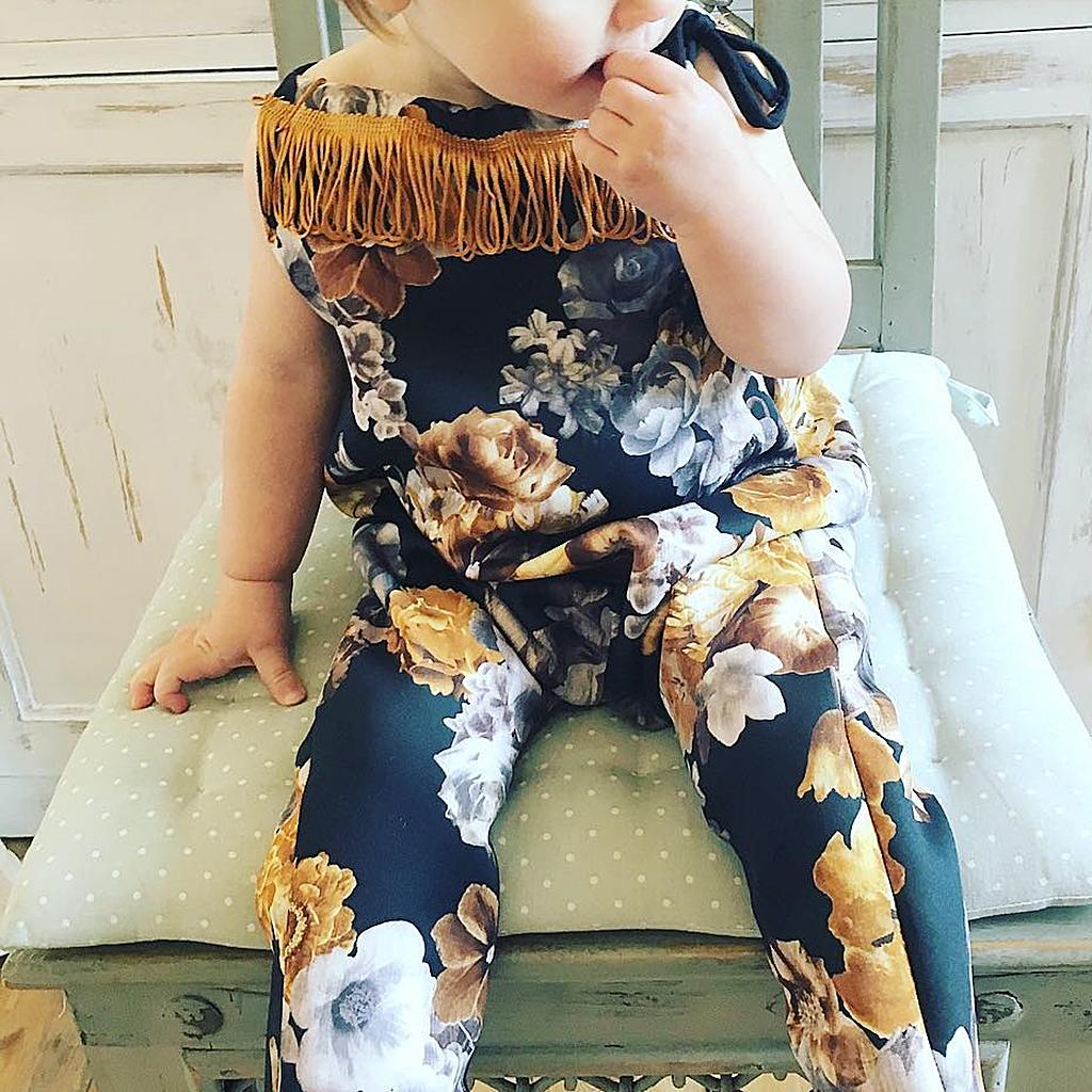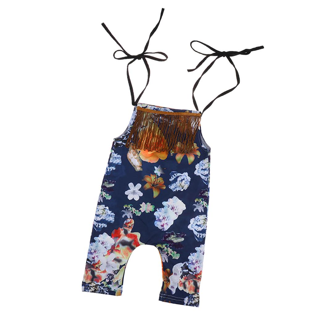 Baby girls floral tassel romper jumpsuit bodysuit, casual modern style, cool and beautiful for spring, summer and autumn.