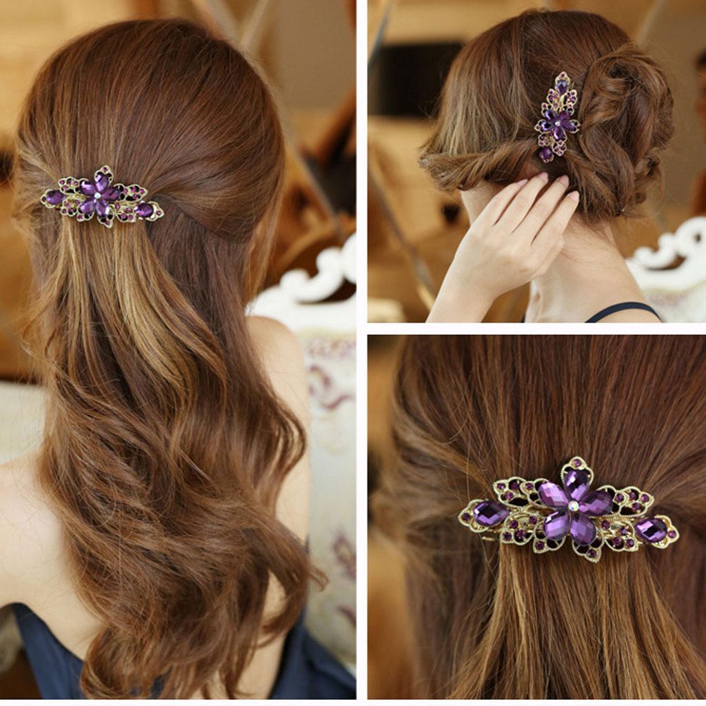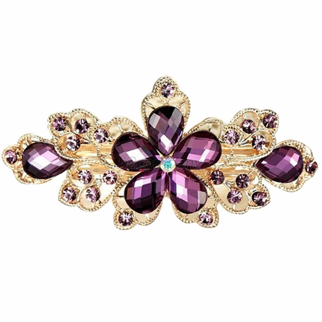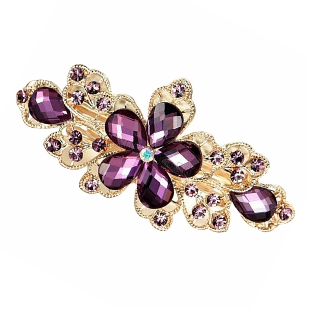 Fashion Crystal Rhinestone Flower Hairpin Barrette Hair Clip Headwear Purple