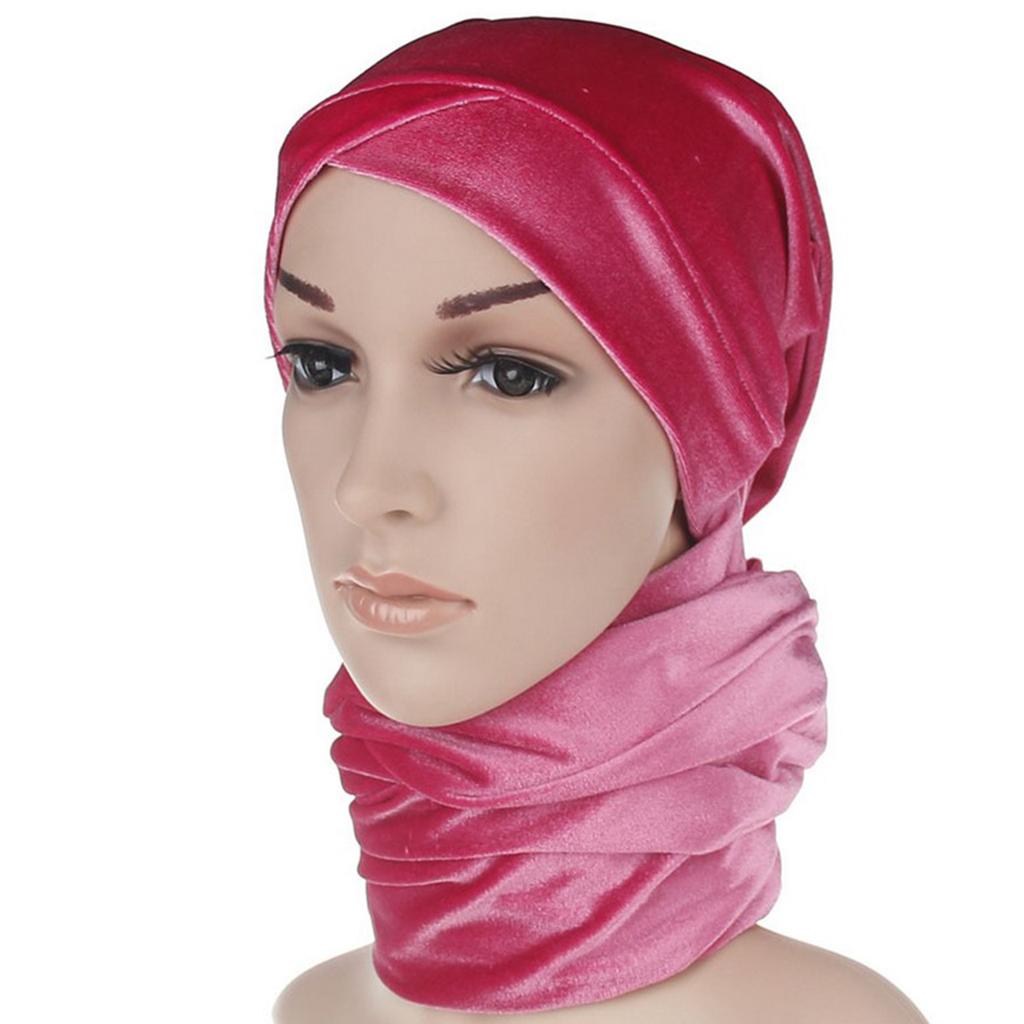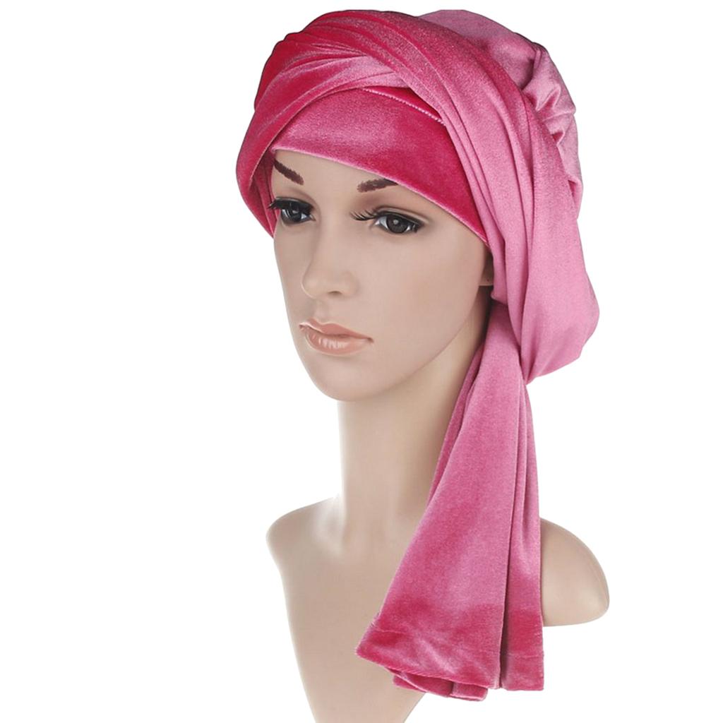 Fashion Womens Velvet Scarf Shawl Head Wrap Cap Hat Multiple Uses Rose Red