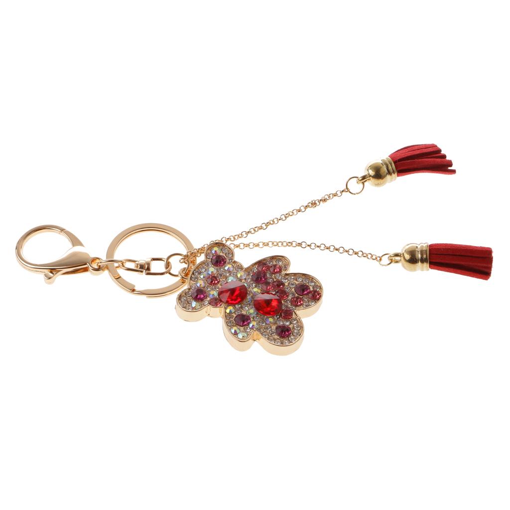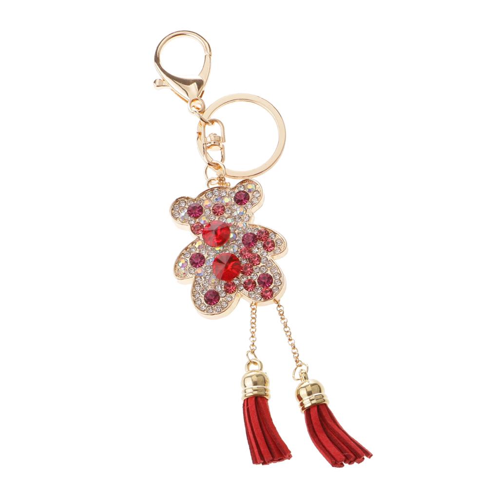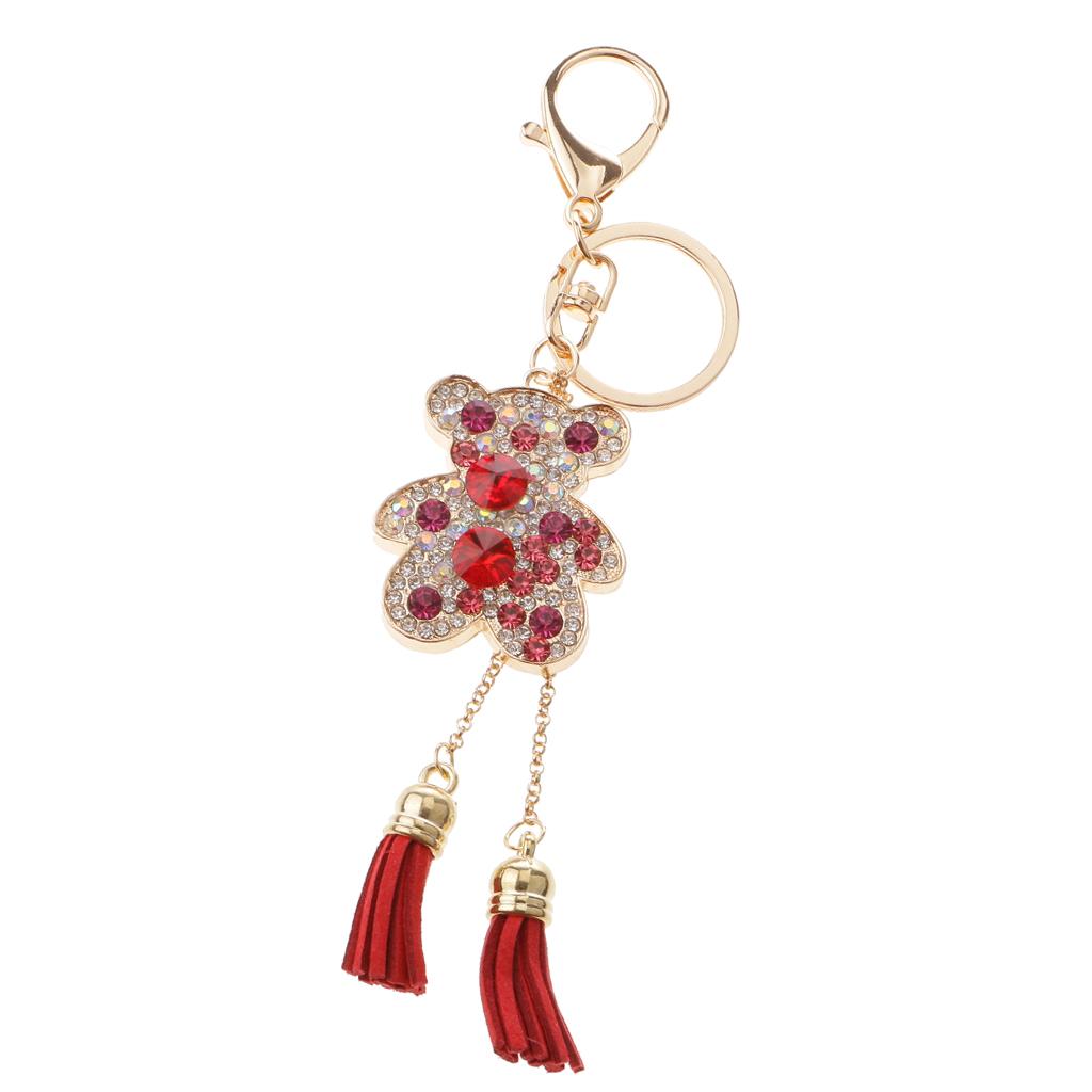 Hot Tassel Bear Charm Pendant Crystal Purse Bag Car Phone Key Chain Ring Keychain Keyring Red