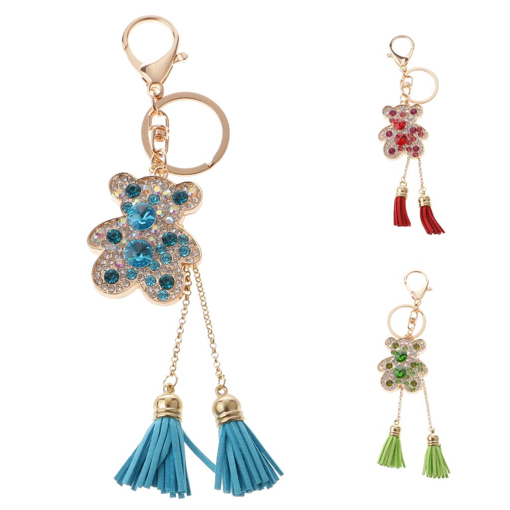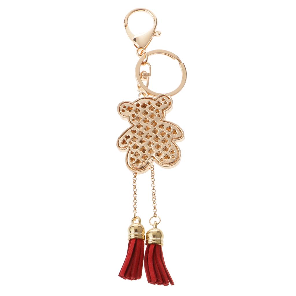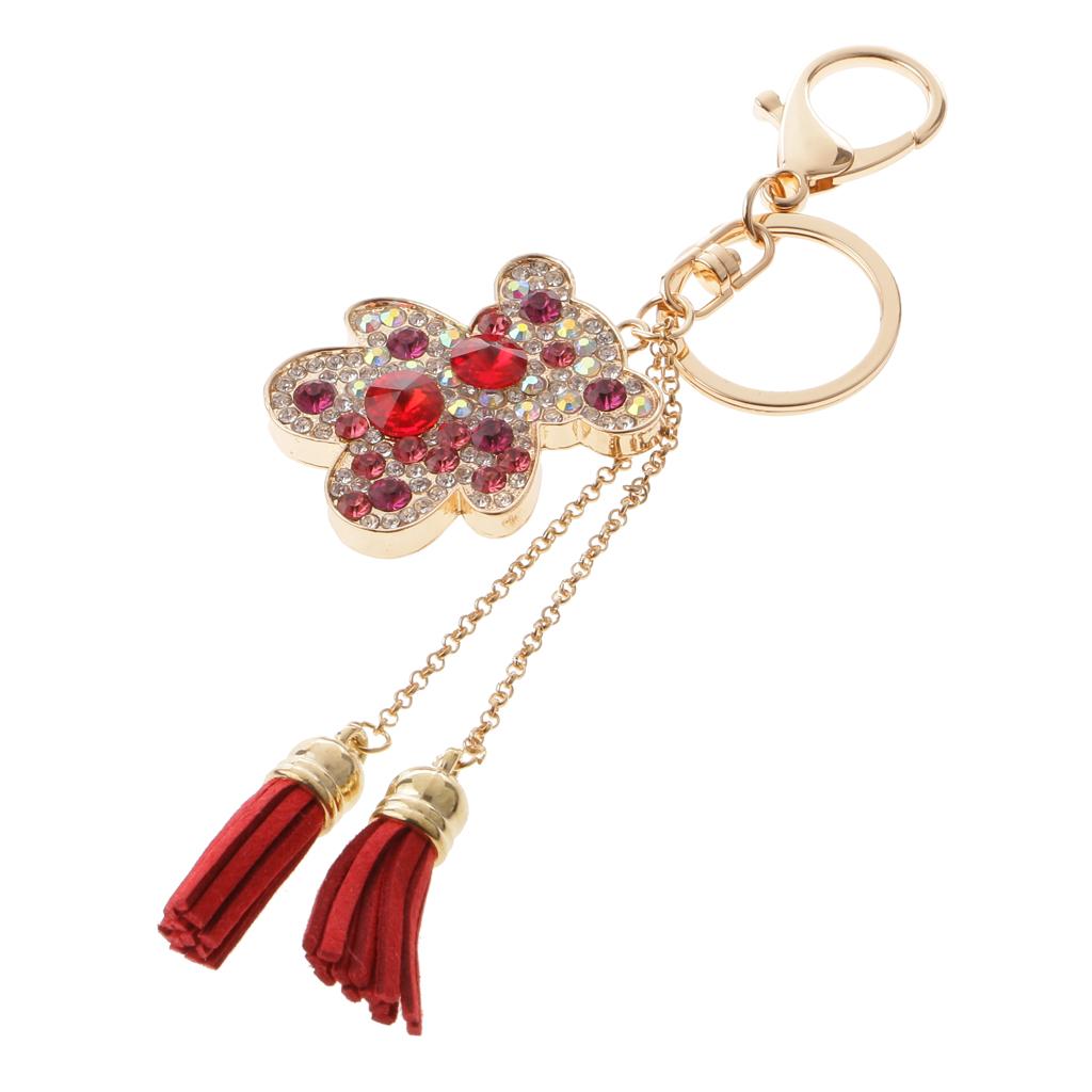 Hot Tassel Bear Charm Pendant Crystal Purse Bag Car Phone Key Chain Ring Keychain Keyring Red