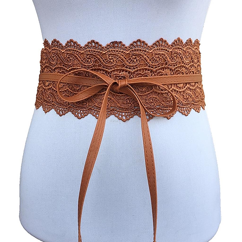 Ladies Lace Up Tie Up High Waist Waistband Wide Lace Corset Belt Beige