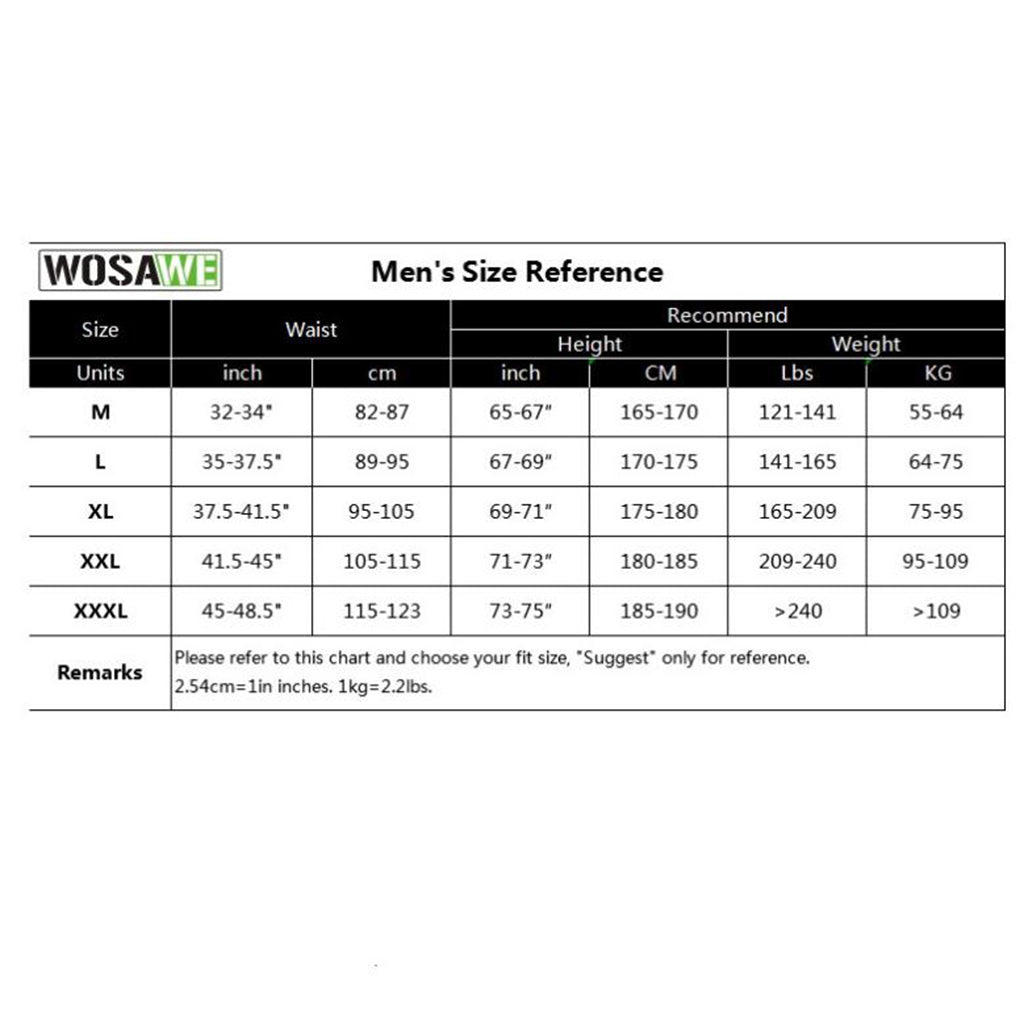 Size: XL, Waist: 95-105cm / 37.5-41.5in, Height: 175-180cm / 69-71in, Weight: 75-95kg / 165-209lbs