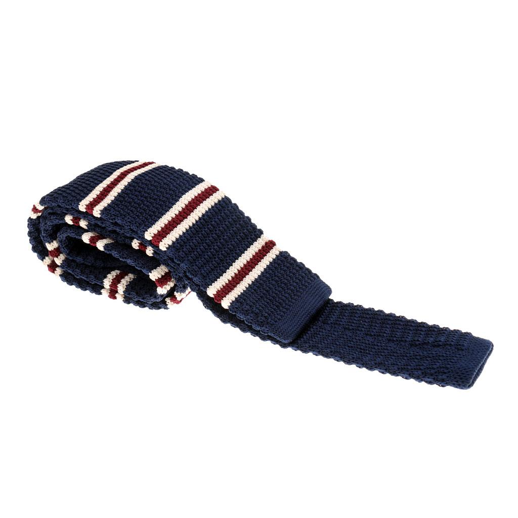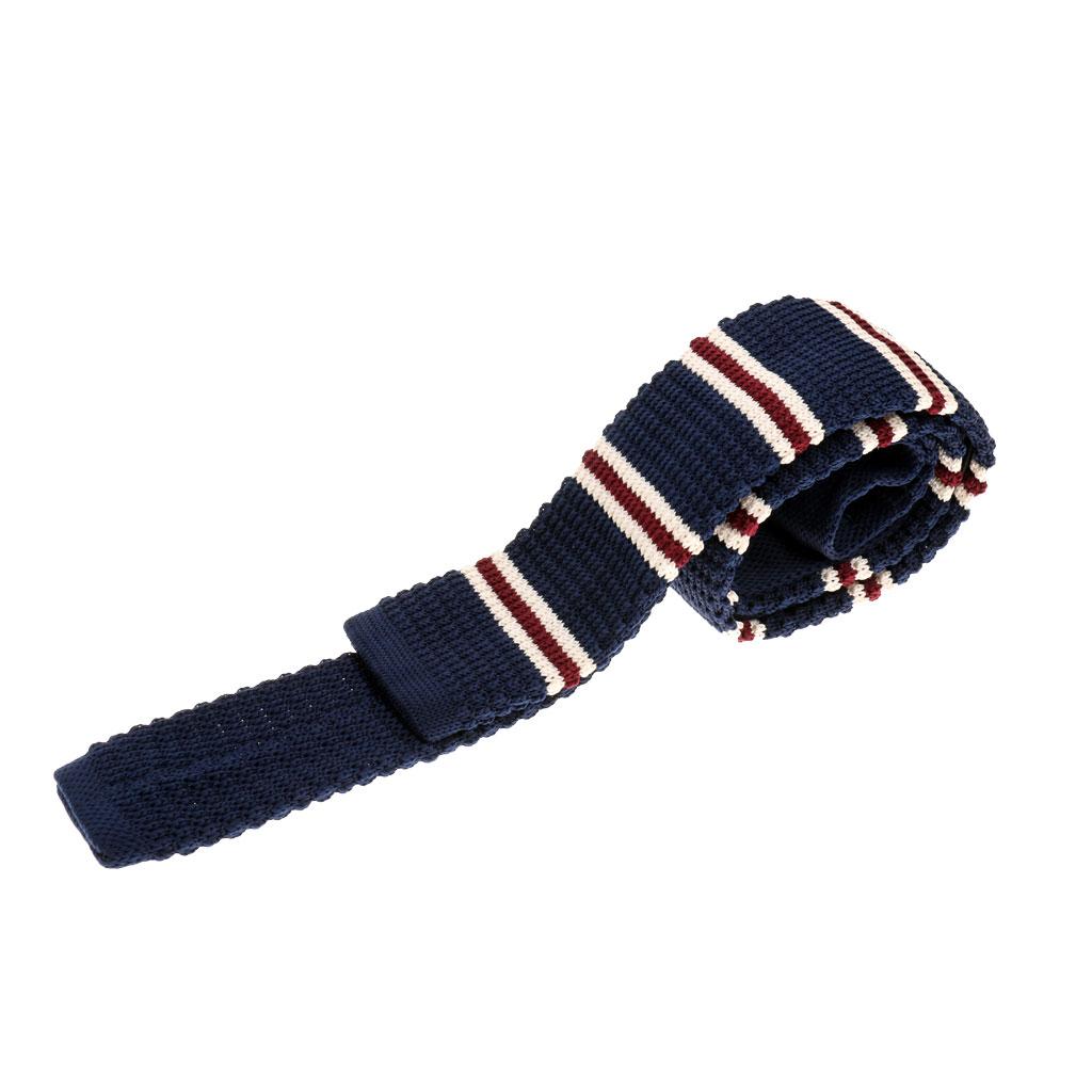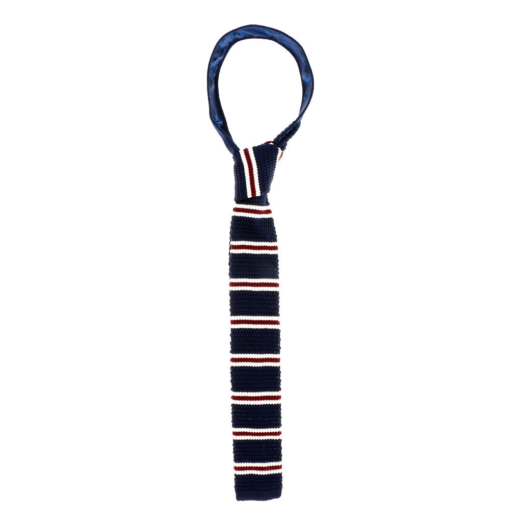 Men's Wool Knitted Flat Woven Tie Necktie (Dark Blue Striped)