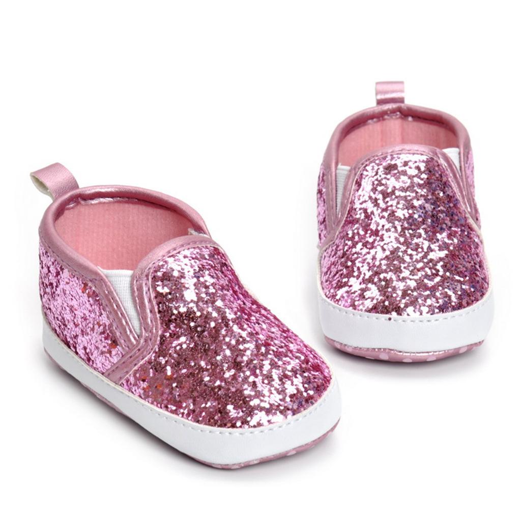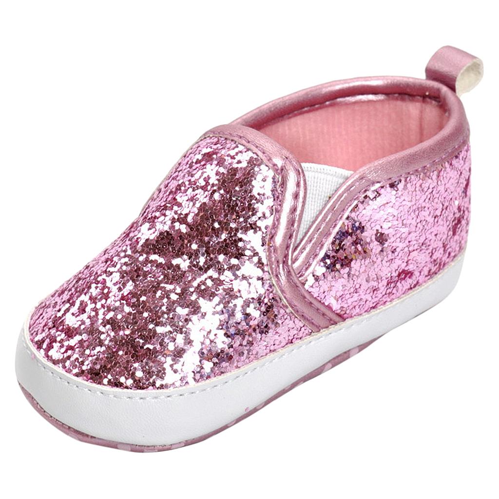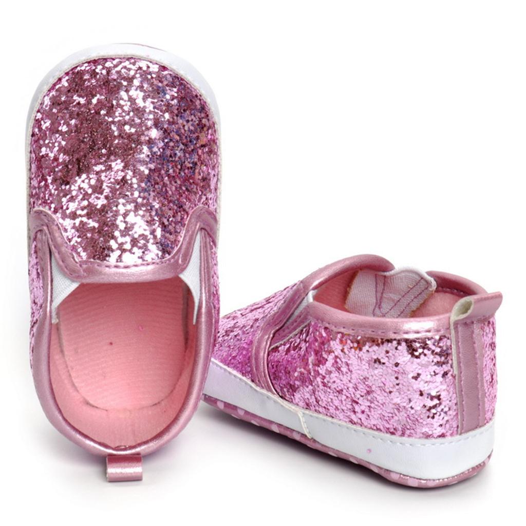 Newborn Baby Soft Soled Bling Crib Shoes Anti-Slip Sneakers Pink 12cm