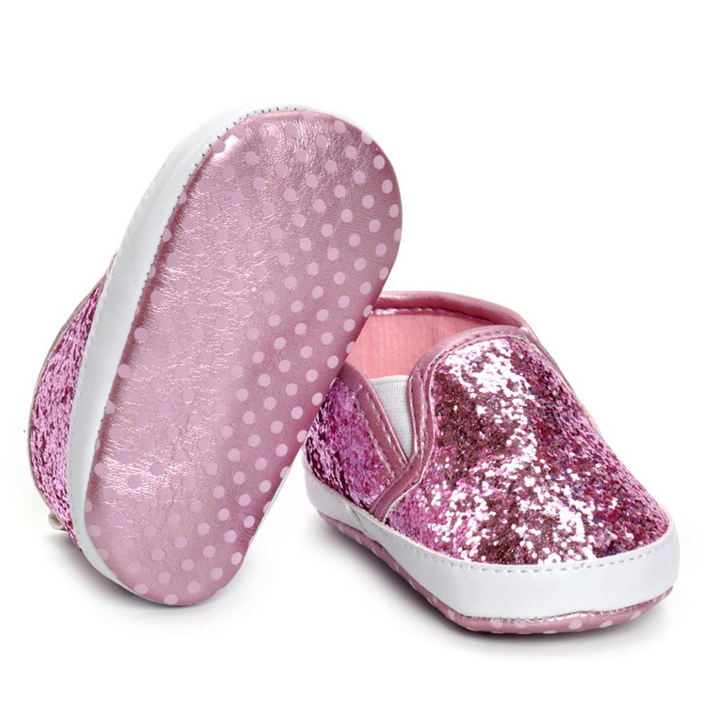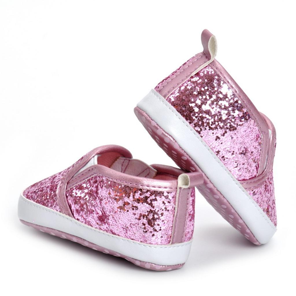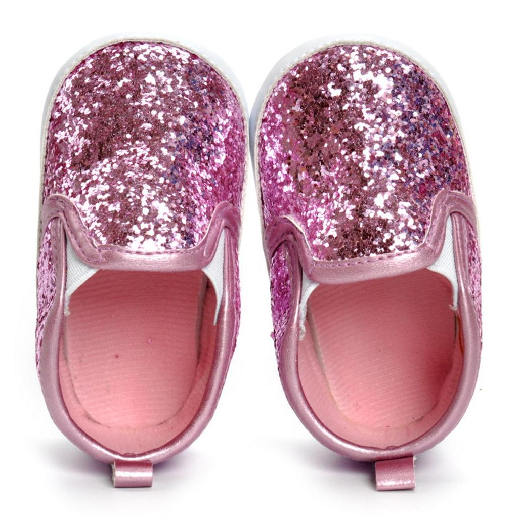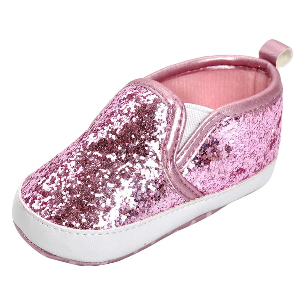 Newborn Baby Soft Soled Bling Crib Shoes Anti-Slip Sneakers Pink 12cm