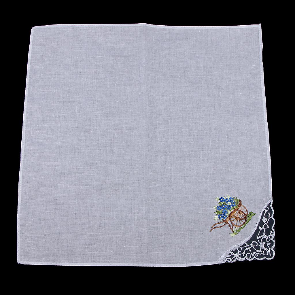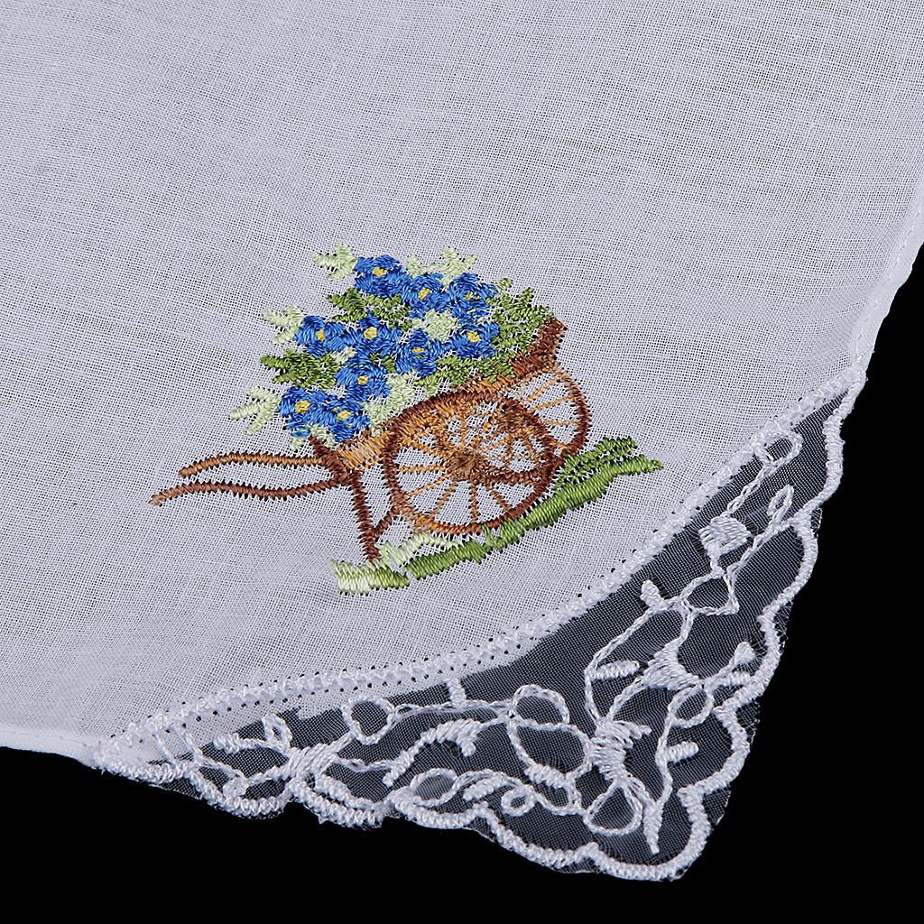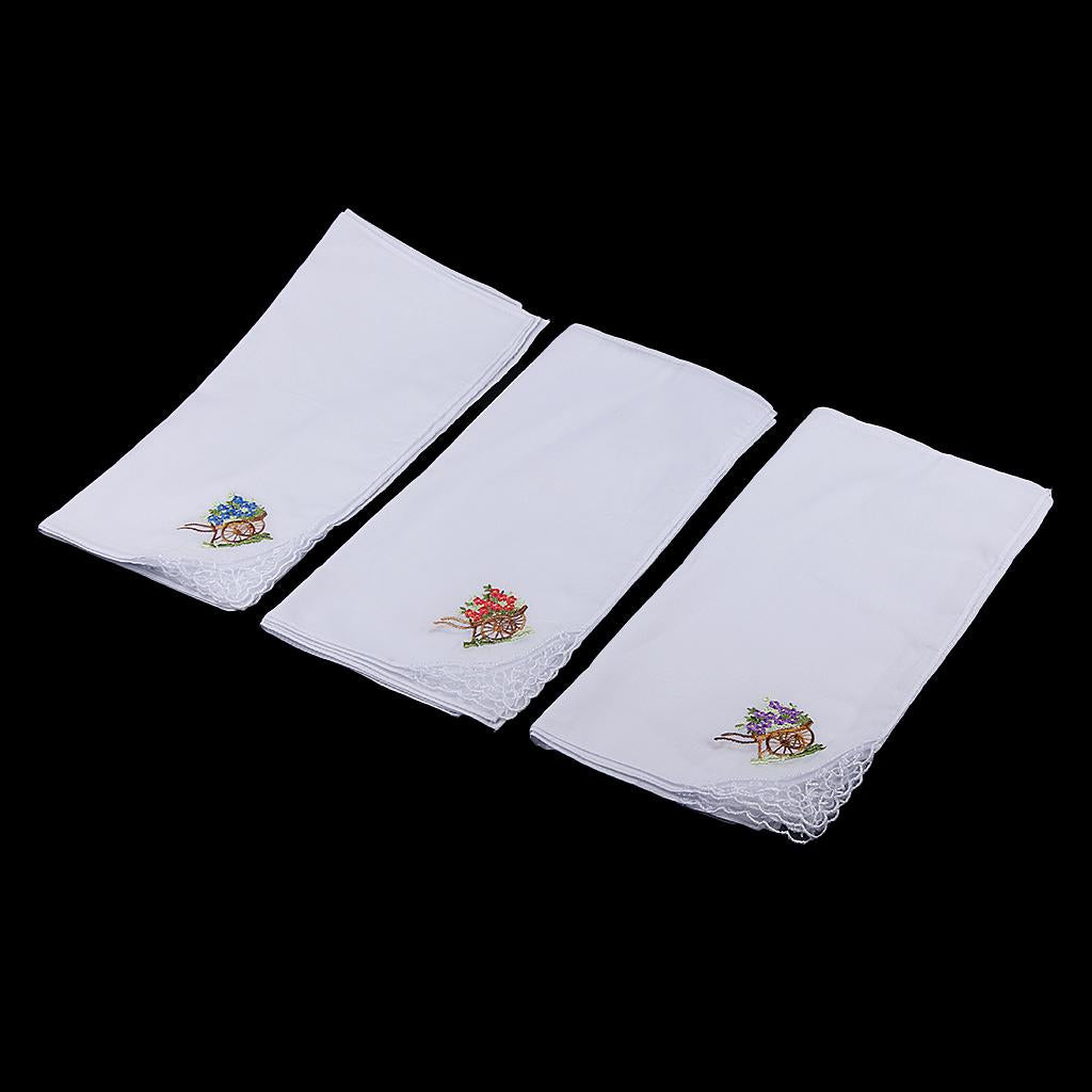 Pack of 12 Retro Flower Embroidery Cotton Handkerchiefs White Hanky for Women #1