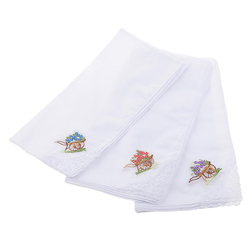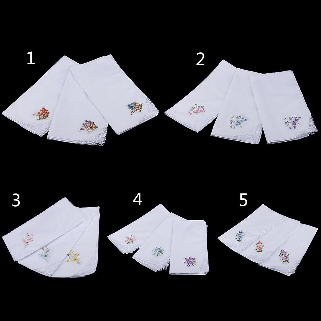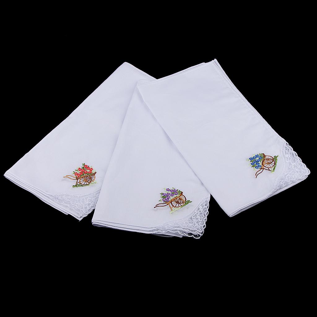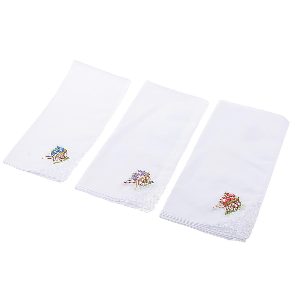 Pack of 12 Retro Flower Embroidery Cotton Handkerchiefs White Hanky for Women #1
