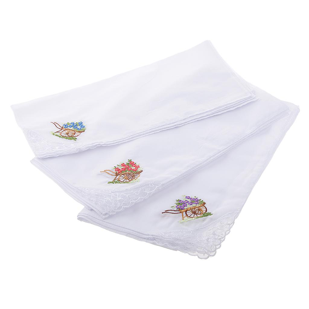 • 12 x Ladies Hankerchiefs (The pattern has three colors, each 4 pieces hankerchiefs in one color)