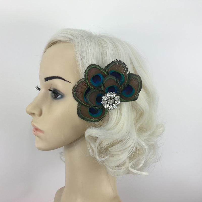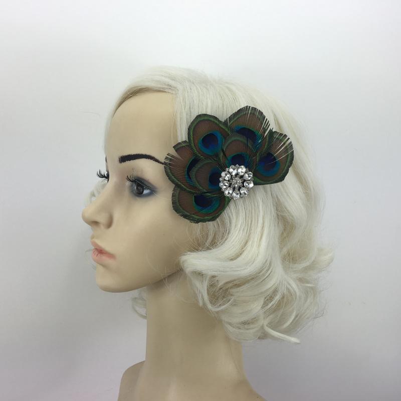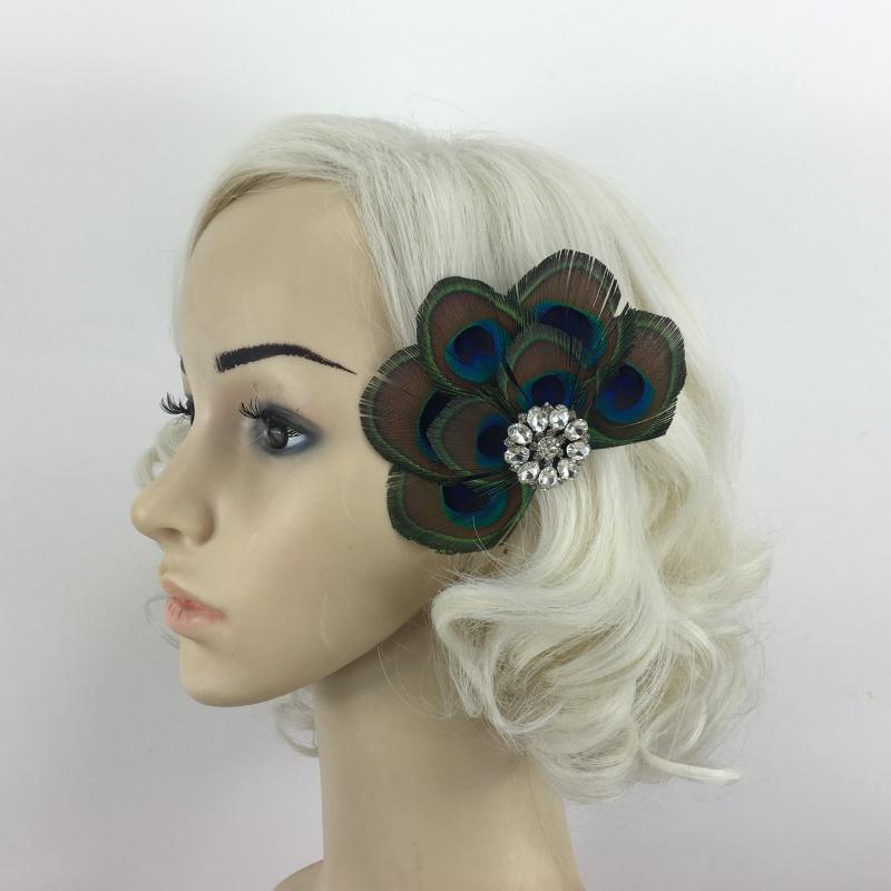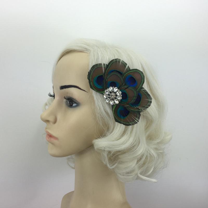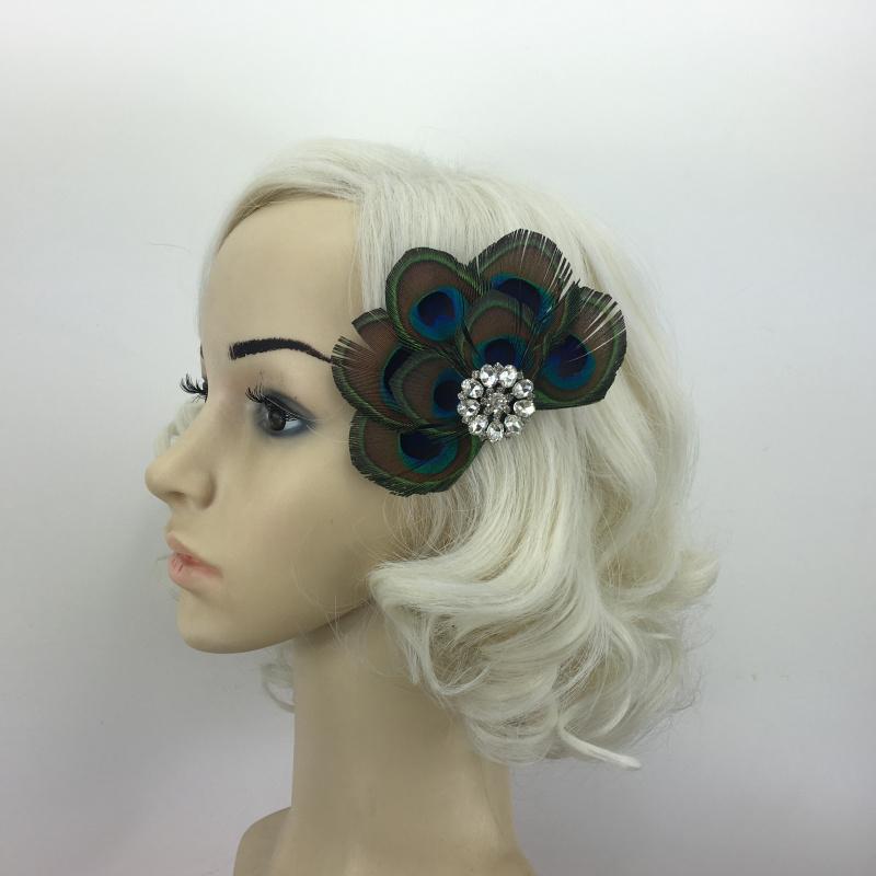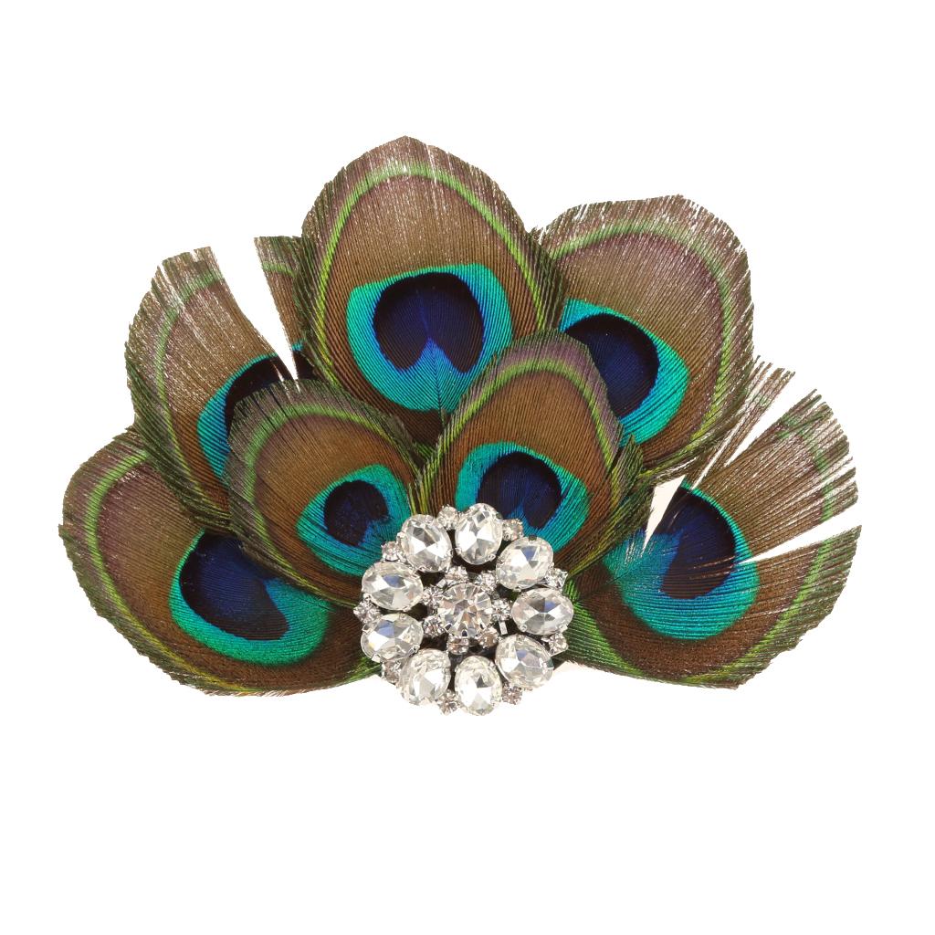 • Material: Peacock feather, Rhinestone, Alloy