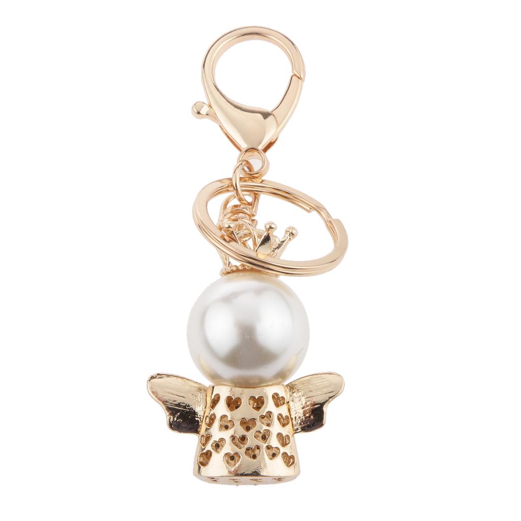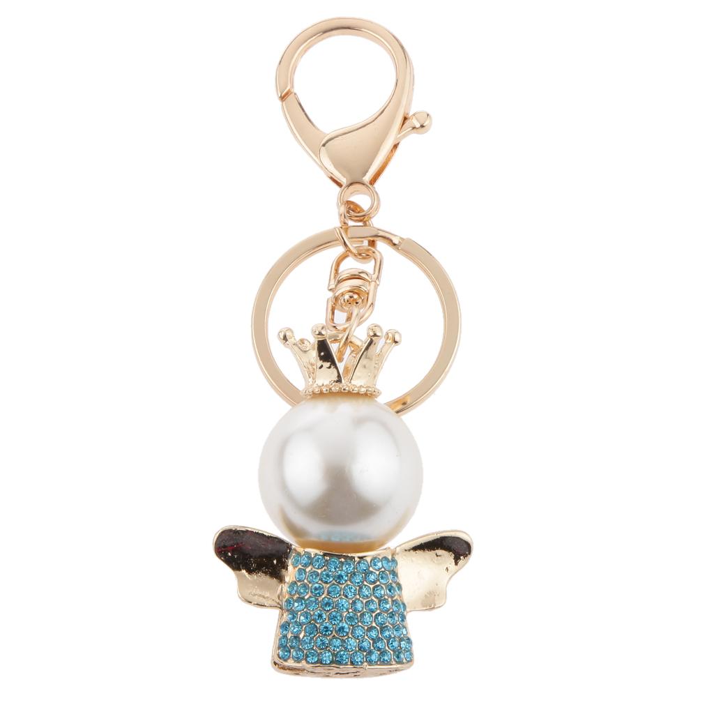 Rhinestone Crystal Queen Crown Angel Pendant Keyring Keychain Blue