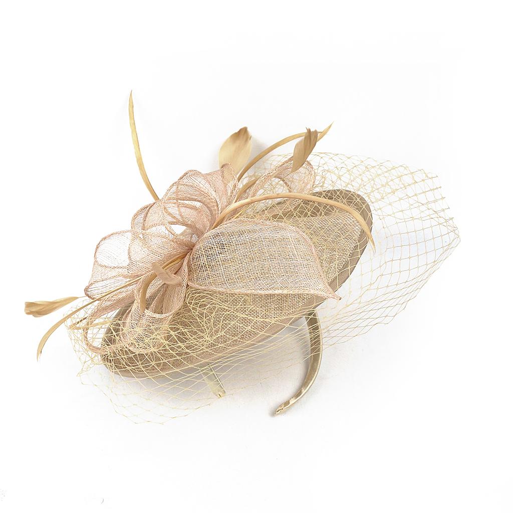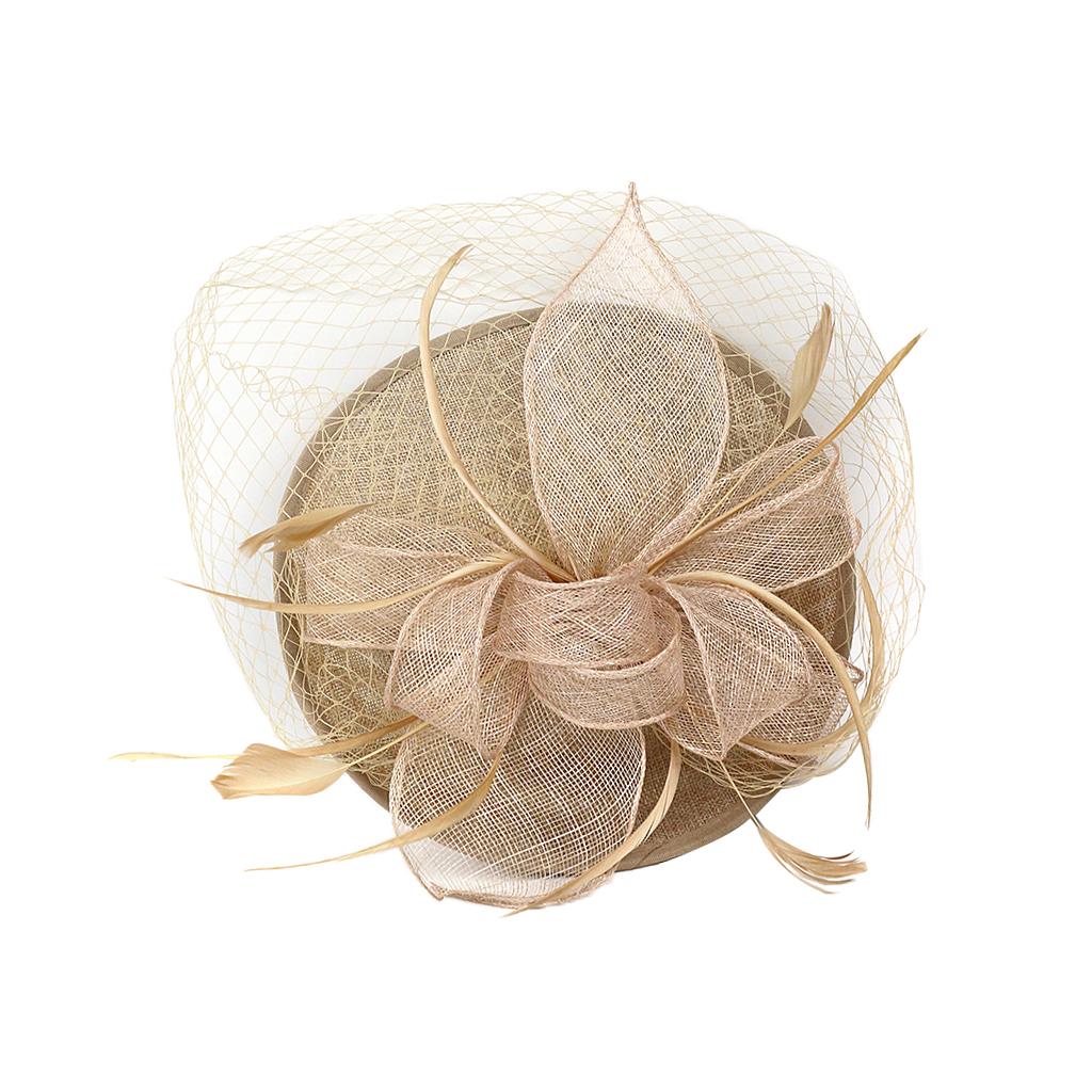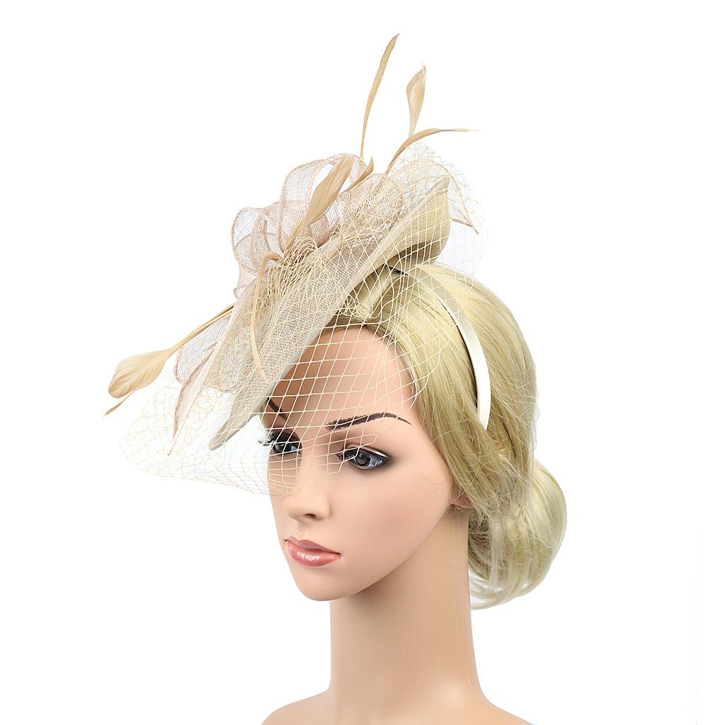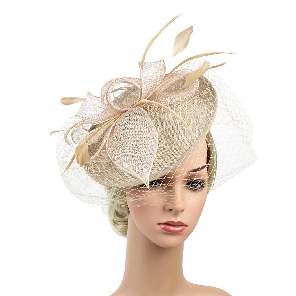 Sinamay Hat Feather Headband Fascinator Veil Wedding Royal Ascot Champagne